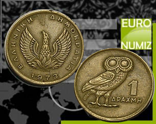 1 DRACHMA 1973 GRECKO STAV VID FOTO