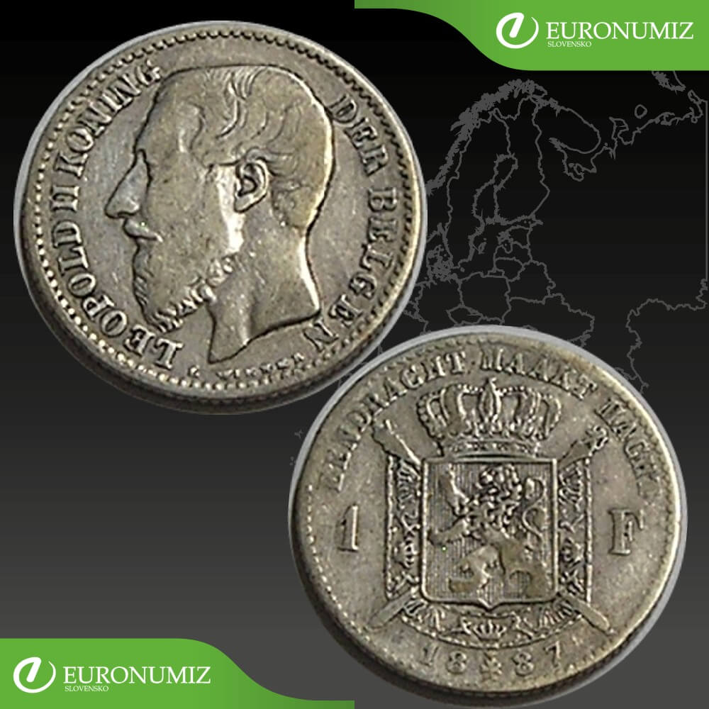 1 FRANK 1887 BELGICKO STRIEBRO STAV VID FOTO