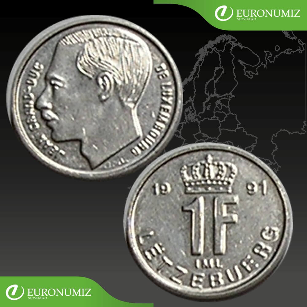 1 FRANK 1991 LUXEMBURSKO STAV VID FOTO