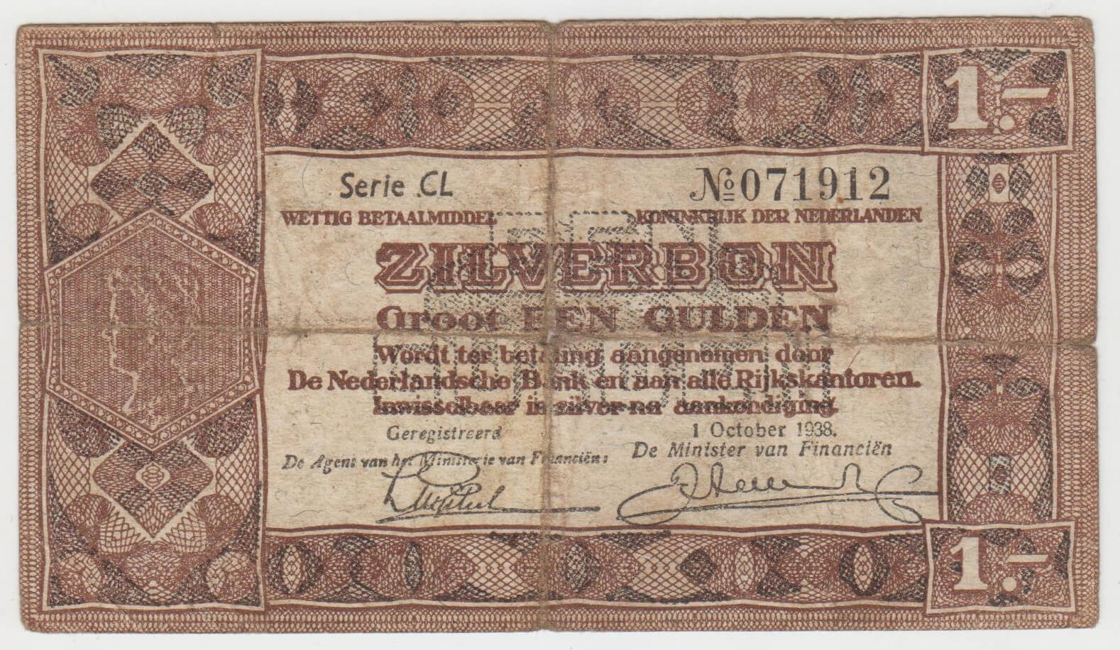 1 GULDEN 1938 HOLANDSKO 071912 STAV VID FOTO MIERNE NATRHNUTA