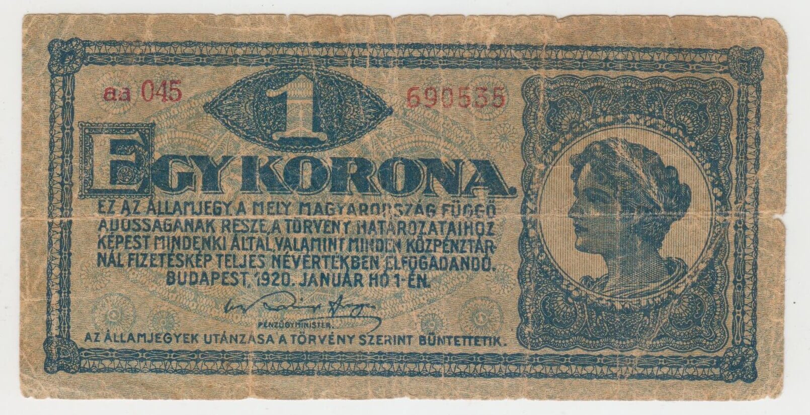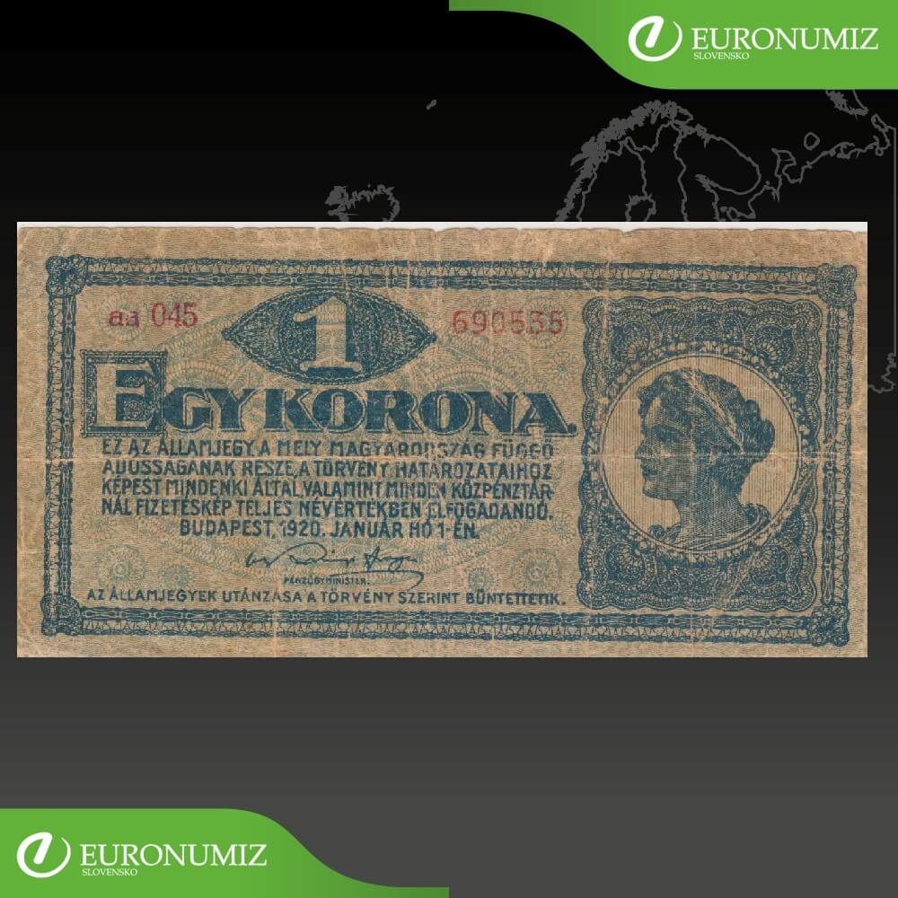 1 KORONA 1920 MADARSKO AA045 690535 STAV VID FOTO NATRHNUTA