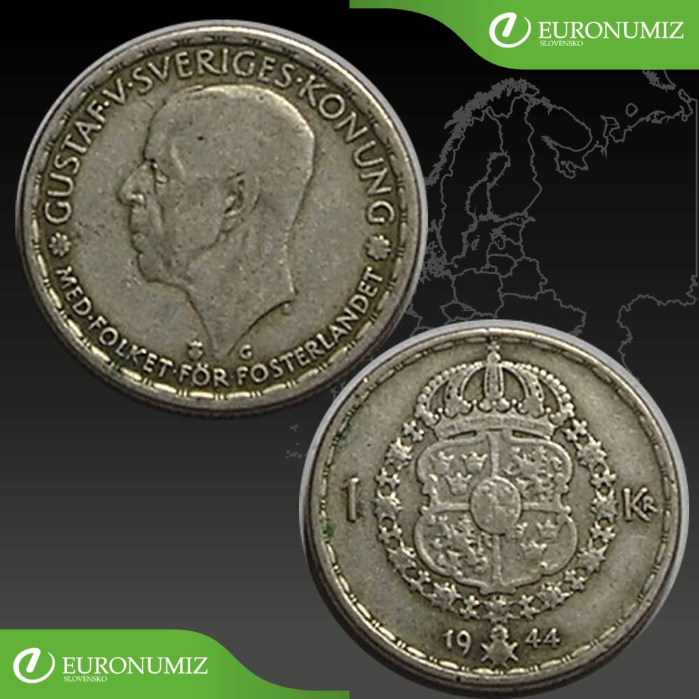 1 KRONA 1944 SVEDSKO STRIEBRO