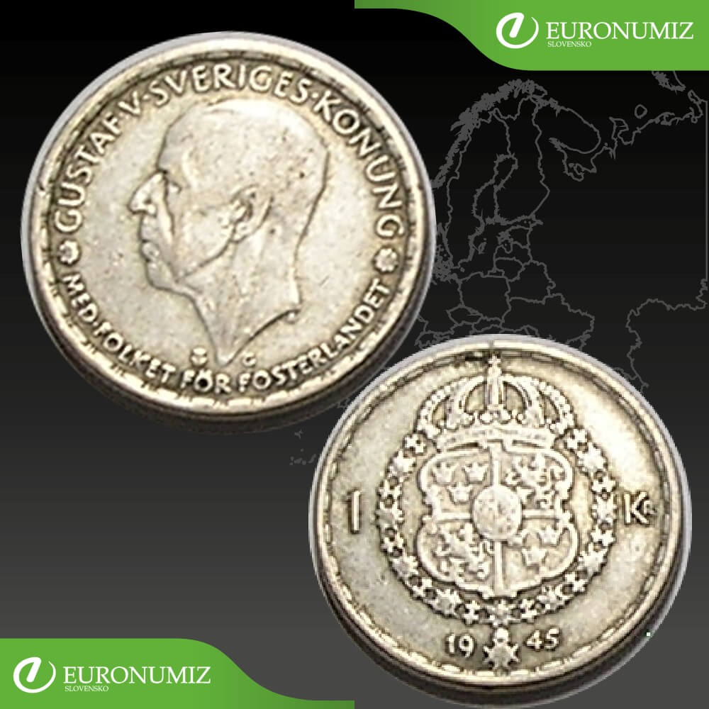 1 KRONA 1945 SVEDSKO STRIEBRO