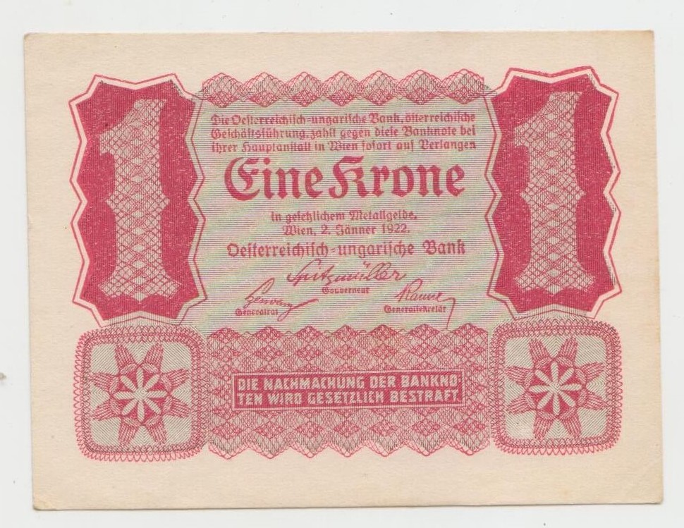 1 KRONE 1922 RAKUSKO STAV VID FOTO