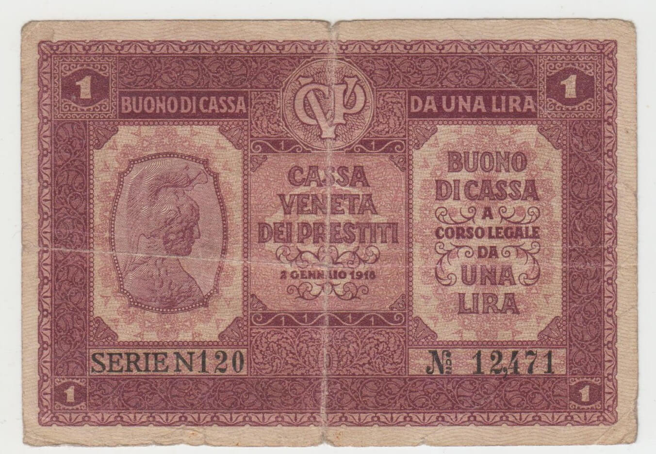 1 LIRA 1918 TALIANSKO N120 12471 STAV VID FOTO MIERNE NATRHNUTA