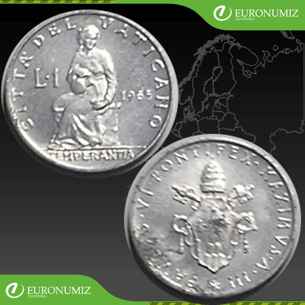 1 LIRA 1965 VATIKAN PAVOL VI MIERNOST STAV VID FOTO