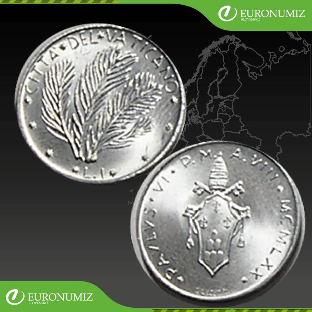 1 LIRA 1970 VATIKAN PAVOL VI PALMA STAV VID FOTO