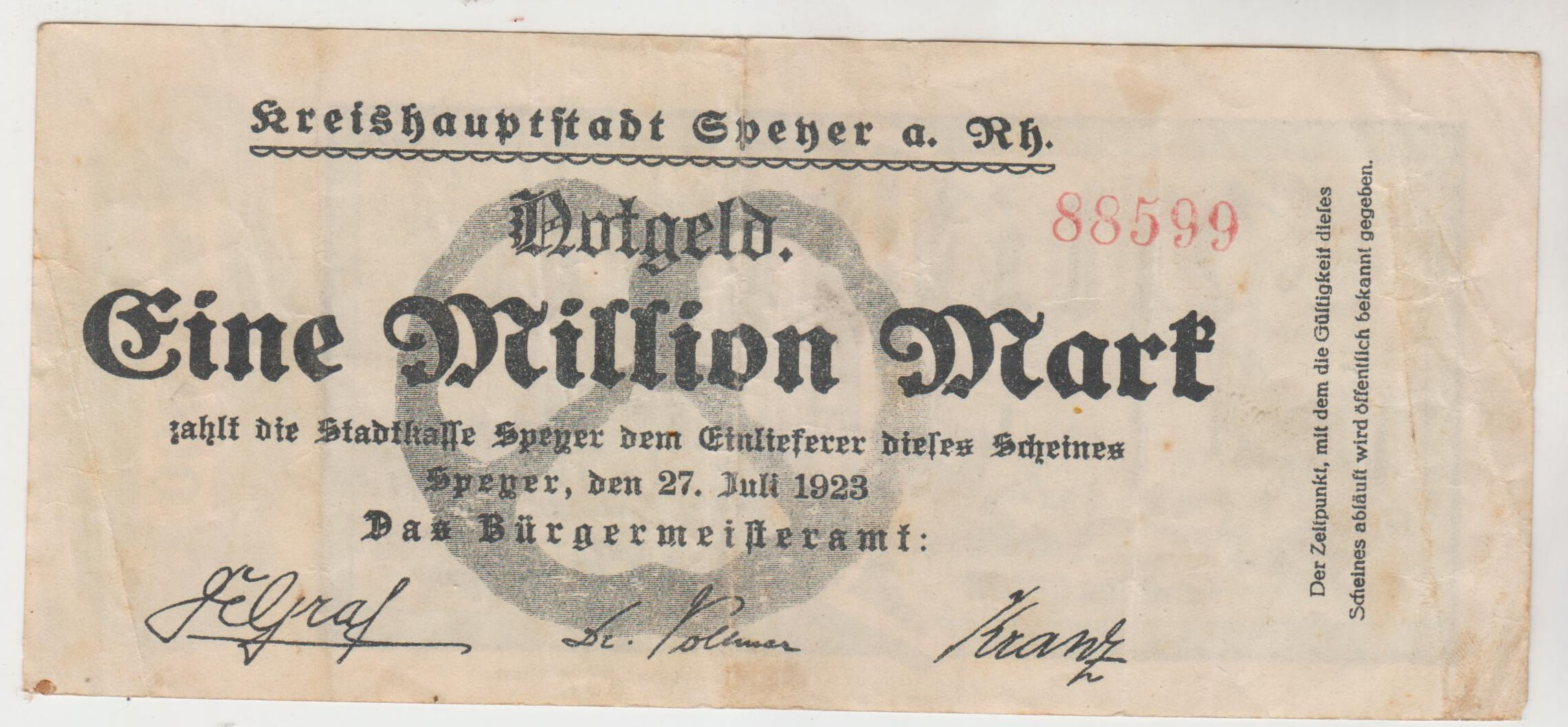 1 MILION MARK 1923 NEMECKO 88599 STAV VID FOTO