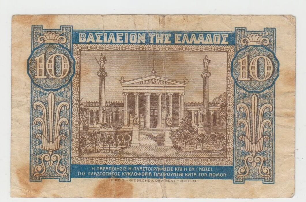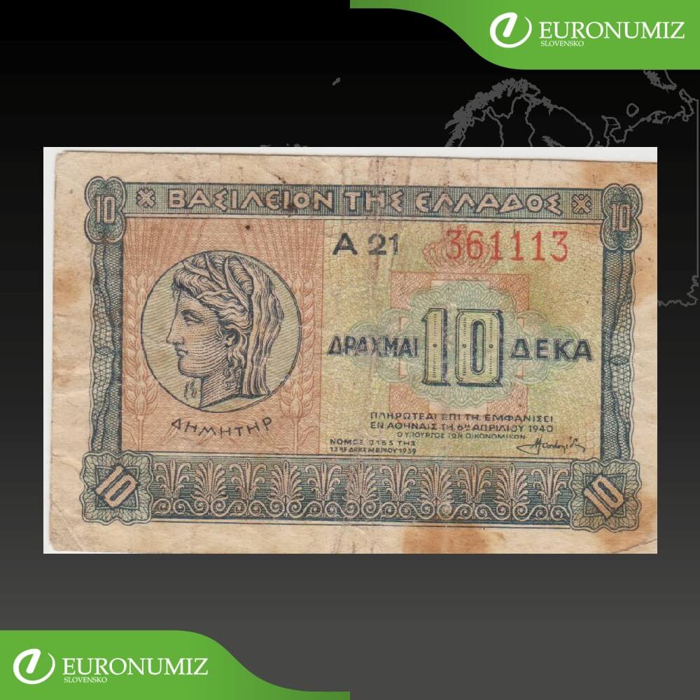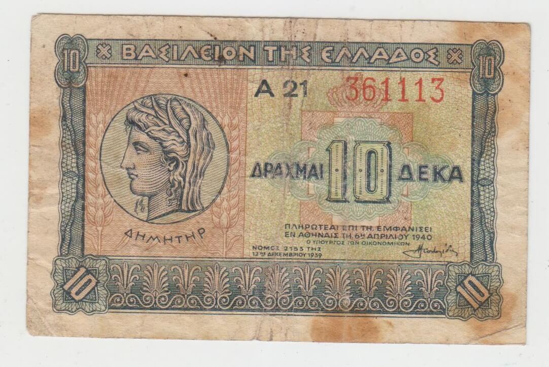 10 DRACHMA 1940 GRECKO A21 361113 STAV VID FOTO