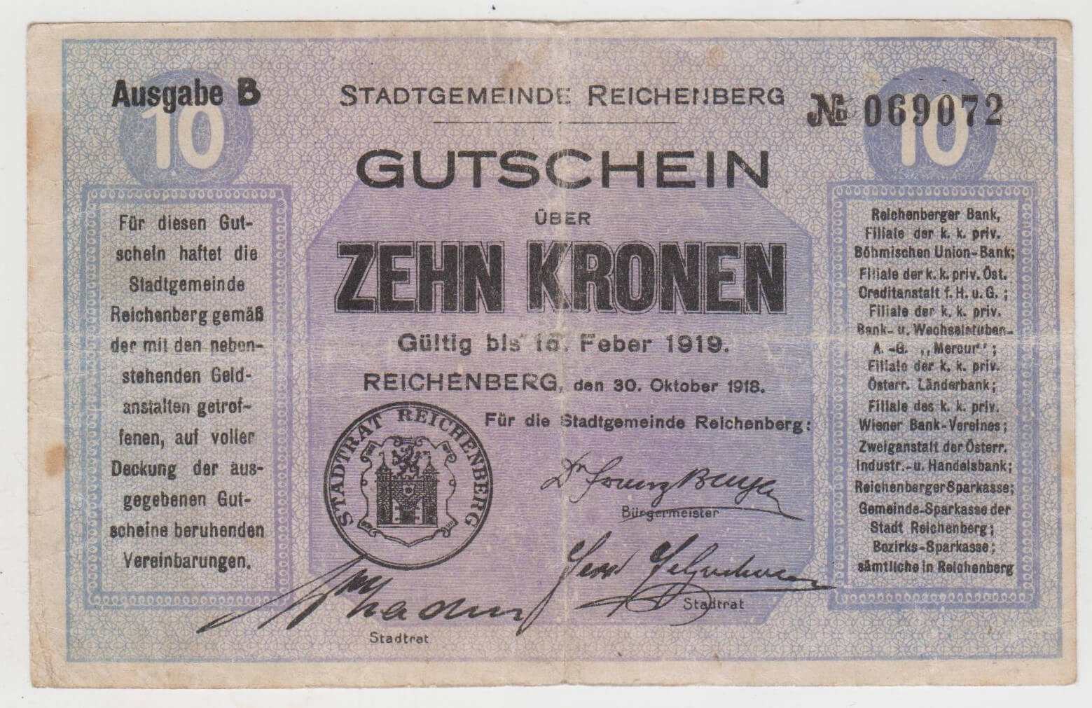 10 KRONEN 1919 NO069072 STAV VID FOTO