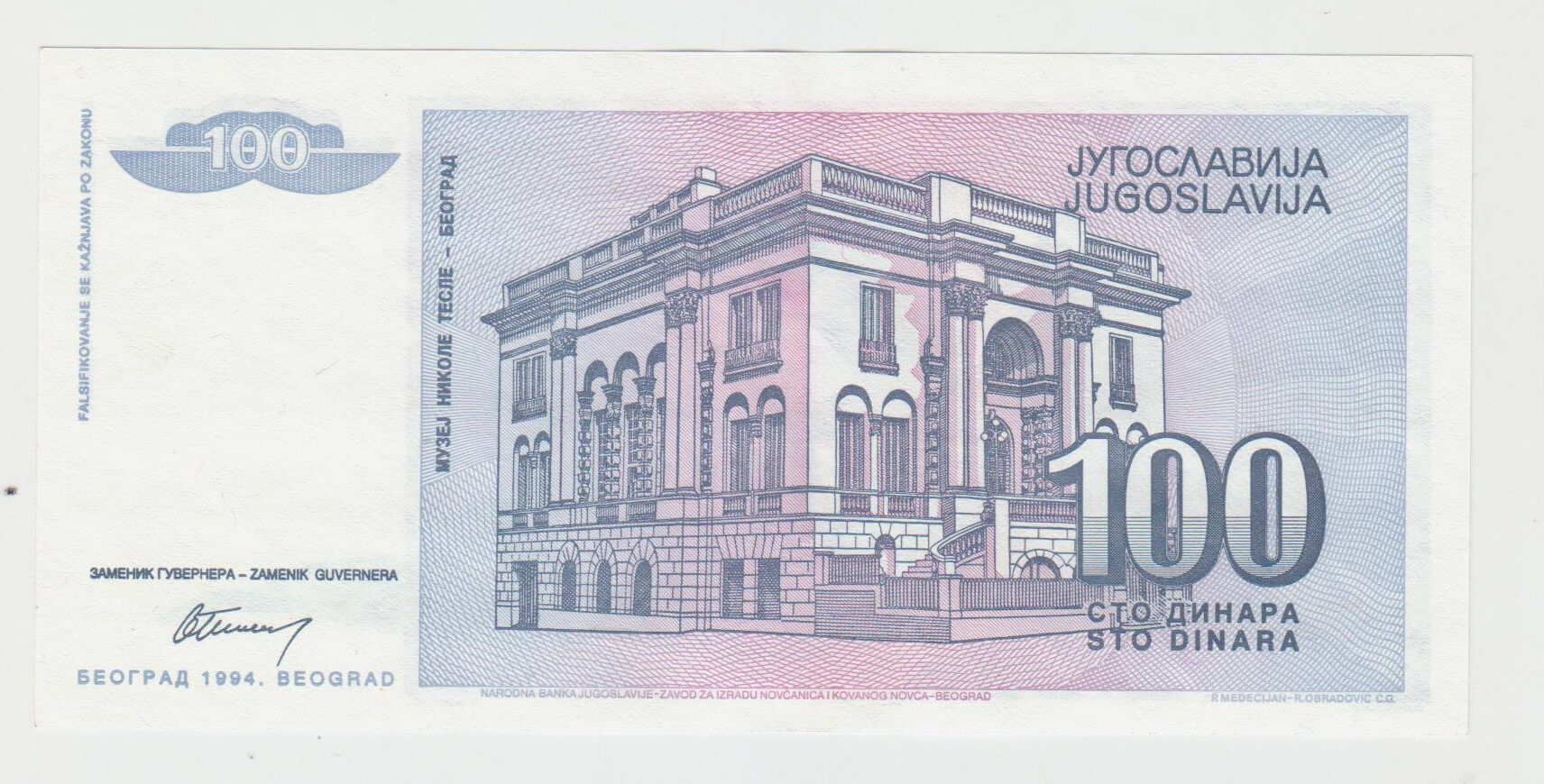 100 DINARA 1994 JUHOSLAVIA  STAV VID FOTO