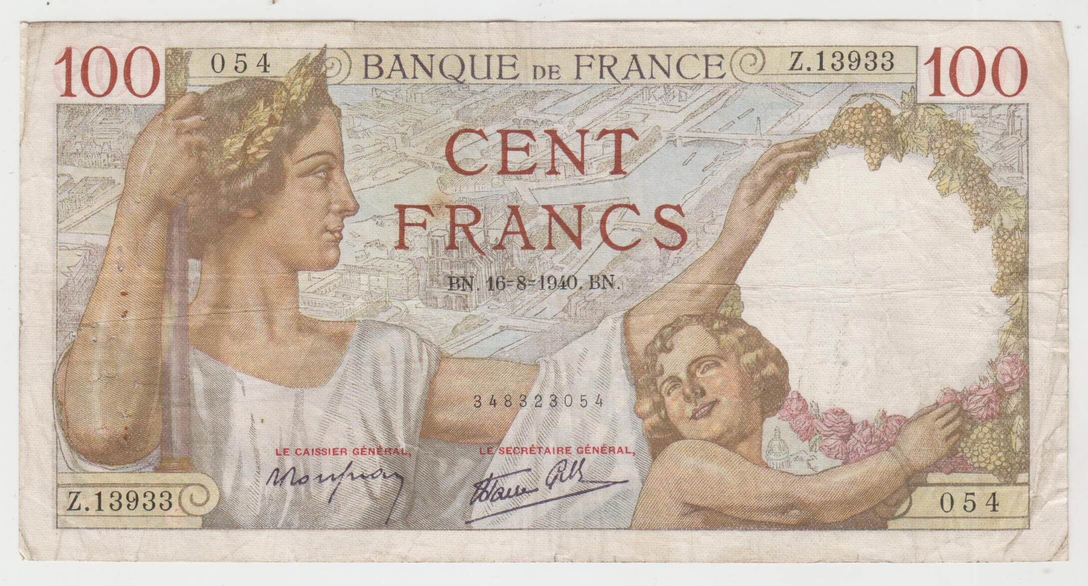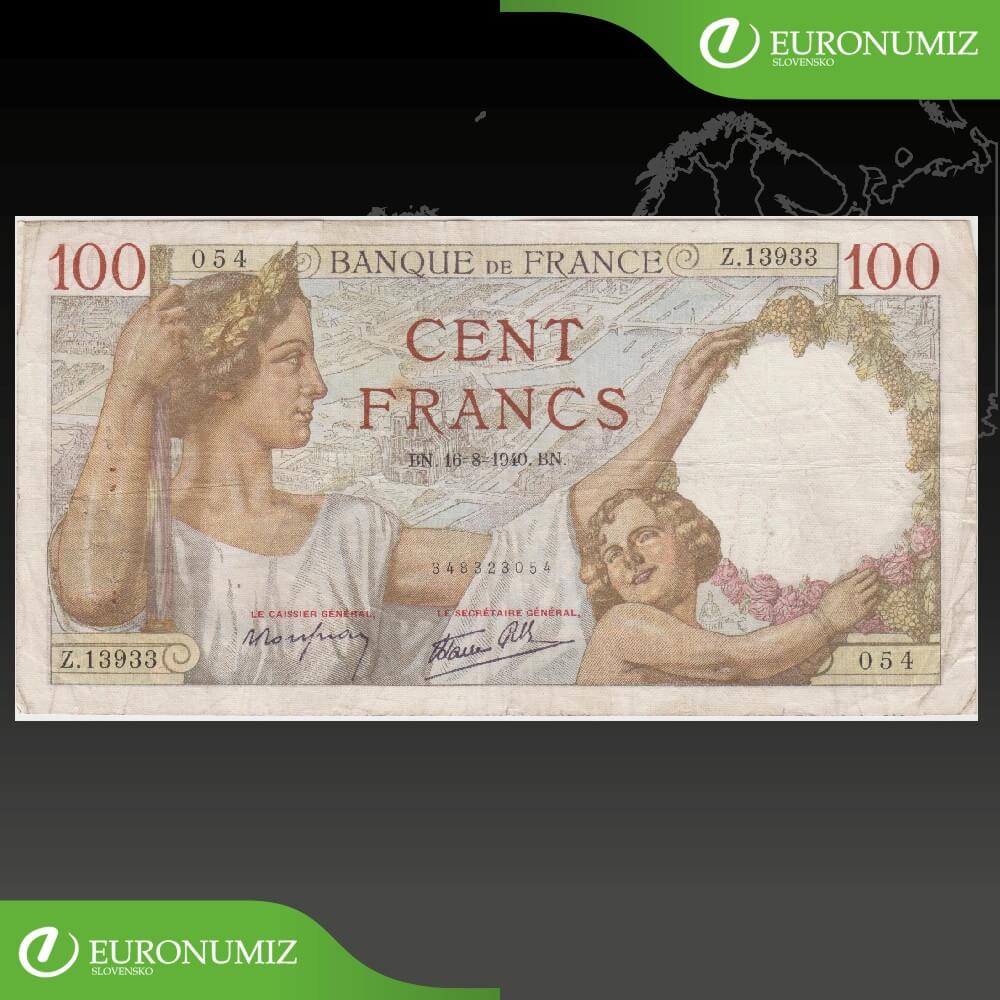 100 FRANCS 1940 FRANCUZSKO 054 Z13933 STAV VID FOTO