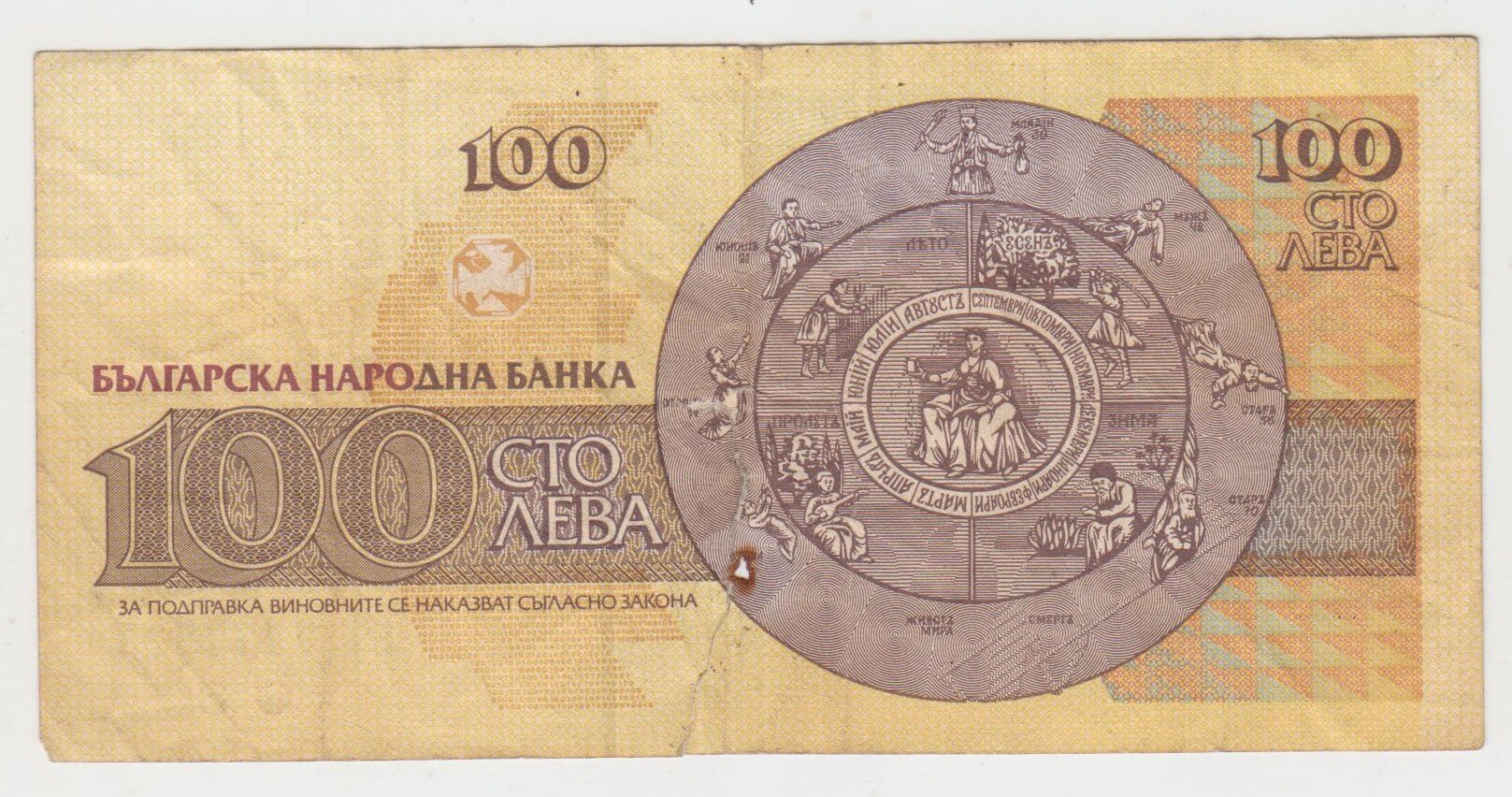 100 LEVA 1993 BULHARSKO 7777723 STAV VID FOTO NATRHNUTA