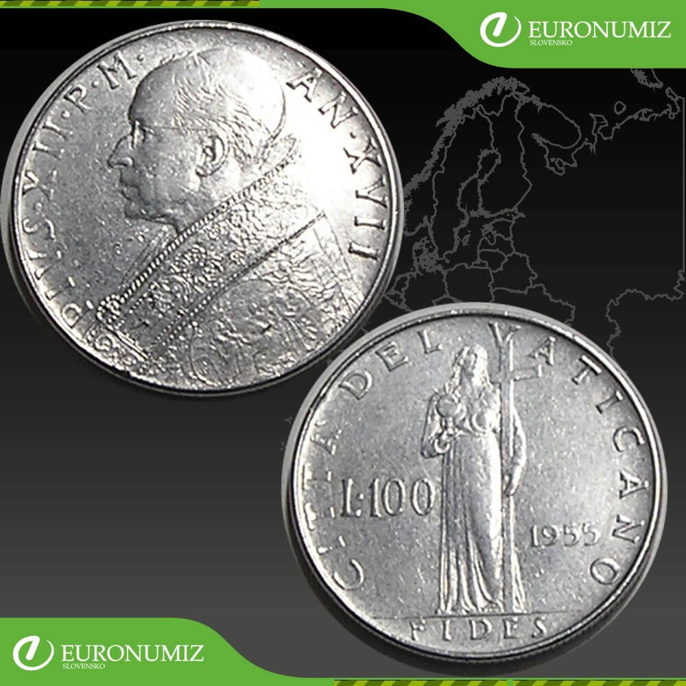 100 LIR 1955 VATIKAN PIUS XII STAV VID FOTO