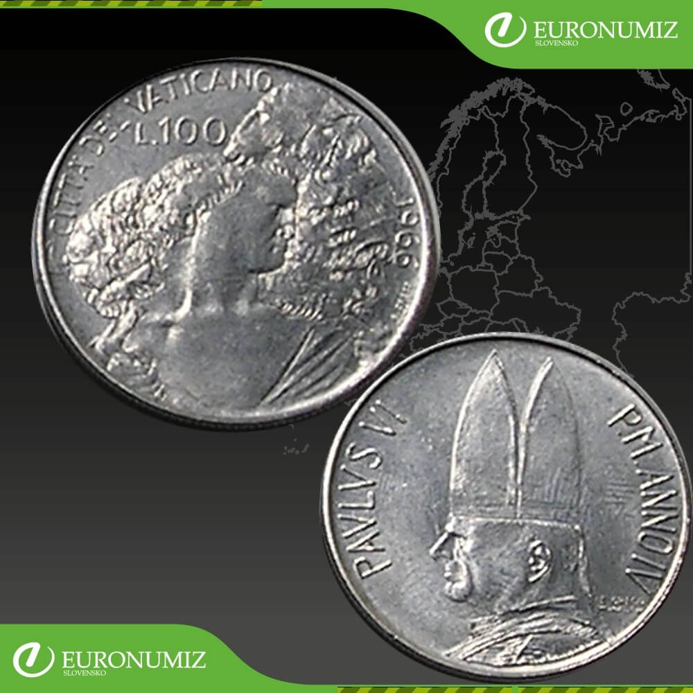 100 LIR 1966 VATIKAN PAVOL VI ZACHRANA DUSE STAV VID FOTO