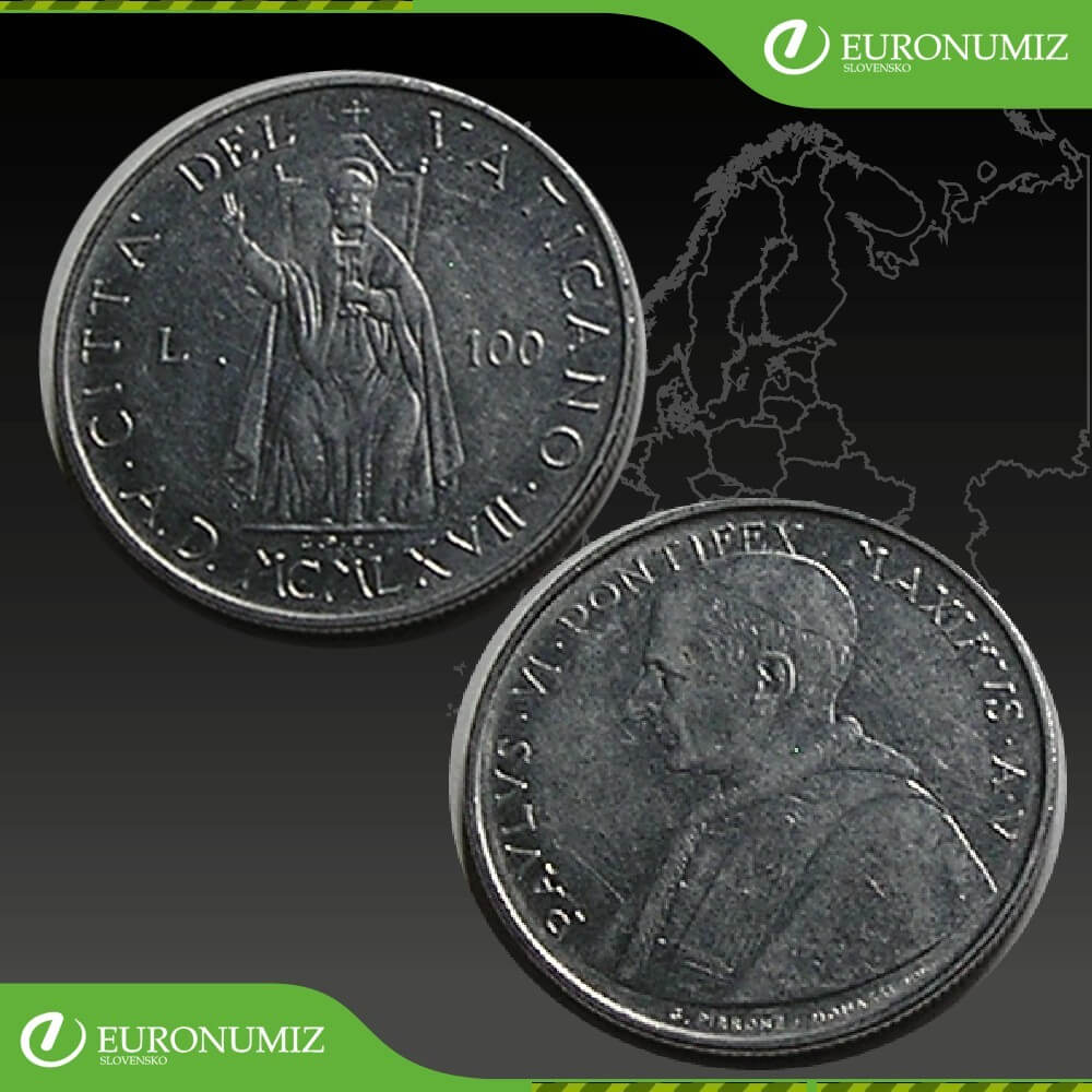 100 LIR 1967 VATIKAN PAVOL VI SV.PETER STAV VID FOTO