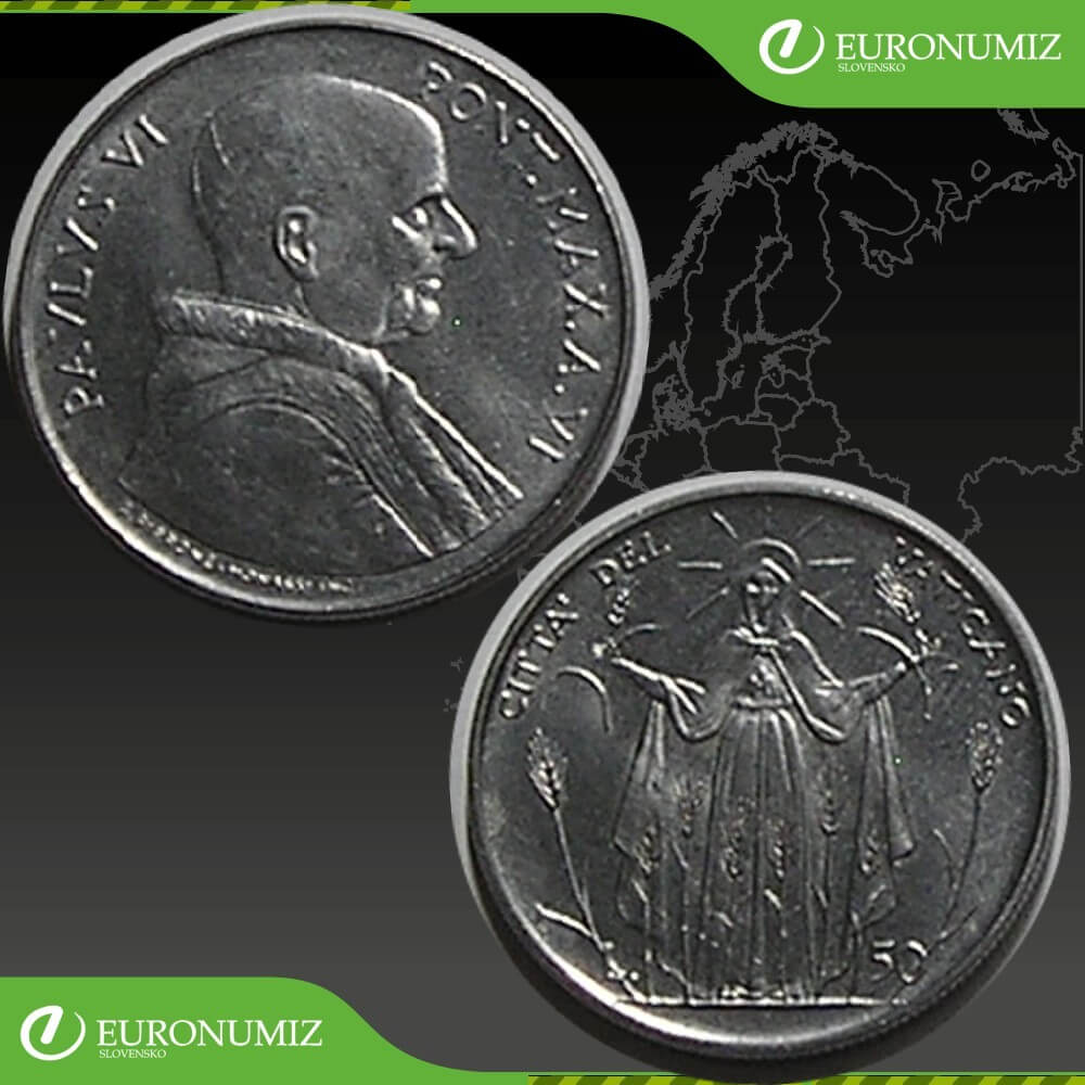 50 LIR 1968 VATIKAN PAVOL VI DAMA ZATVY STAV VID FOTO