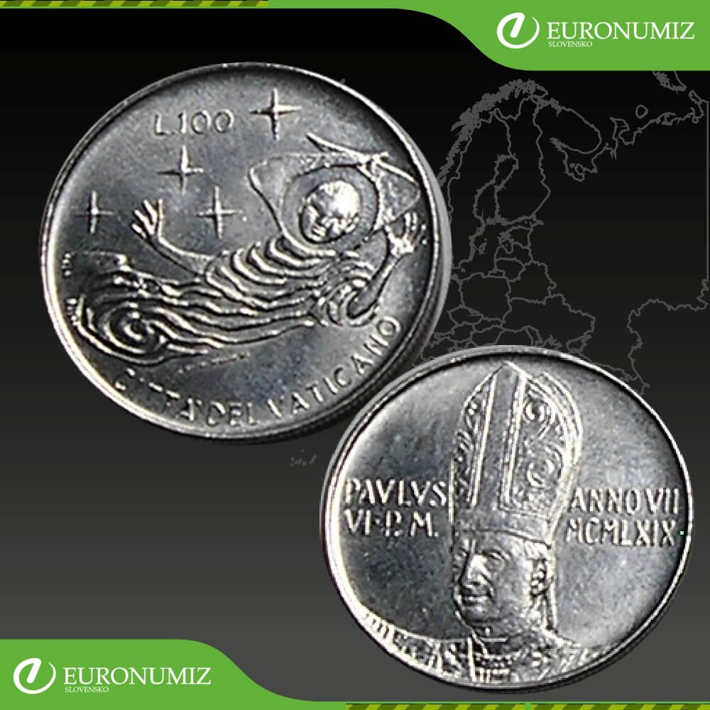 100 LIR 1969 VATIKAN PAVOL VI ANJEL STAV VID FOTO