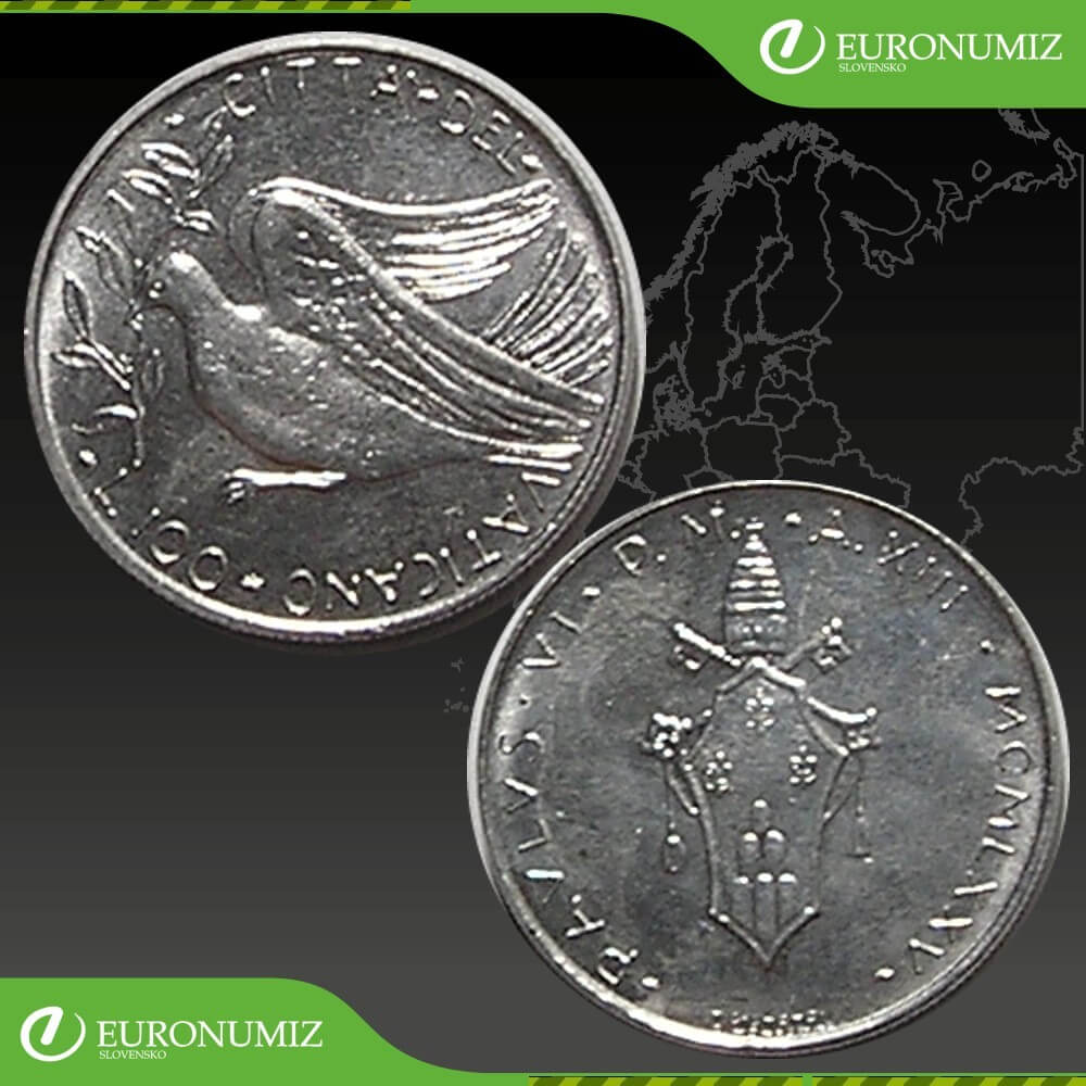 100 LIR 1975 VATIKAN PAVOL VI MIER A POKOJ STAV VID FOTO