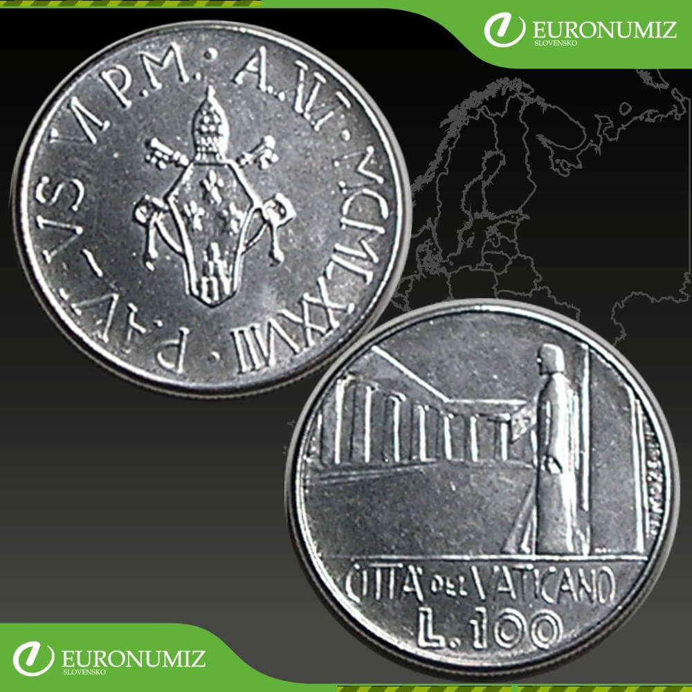 100 LIR 1978 VATIKAN PAVOL VI DIALOG MEDZI BOHOM A CLOVEKOM STAV VID FOTO