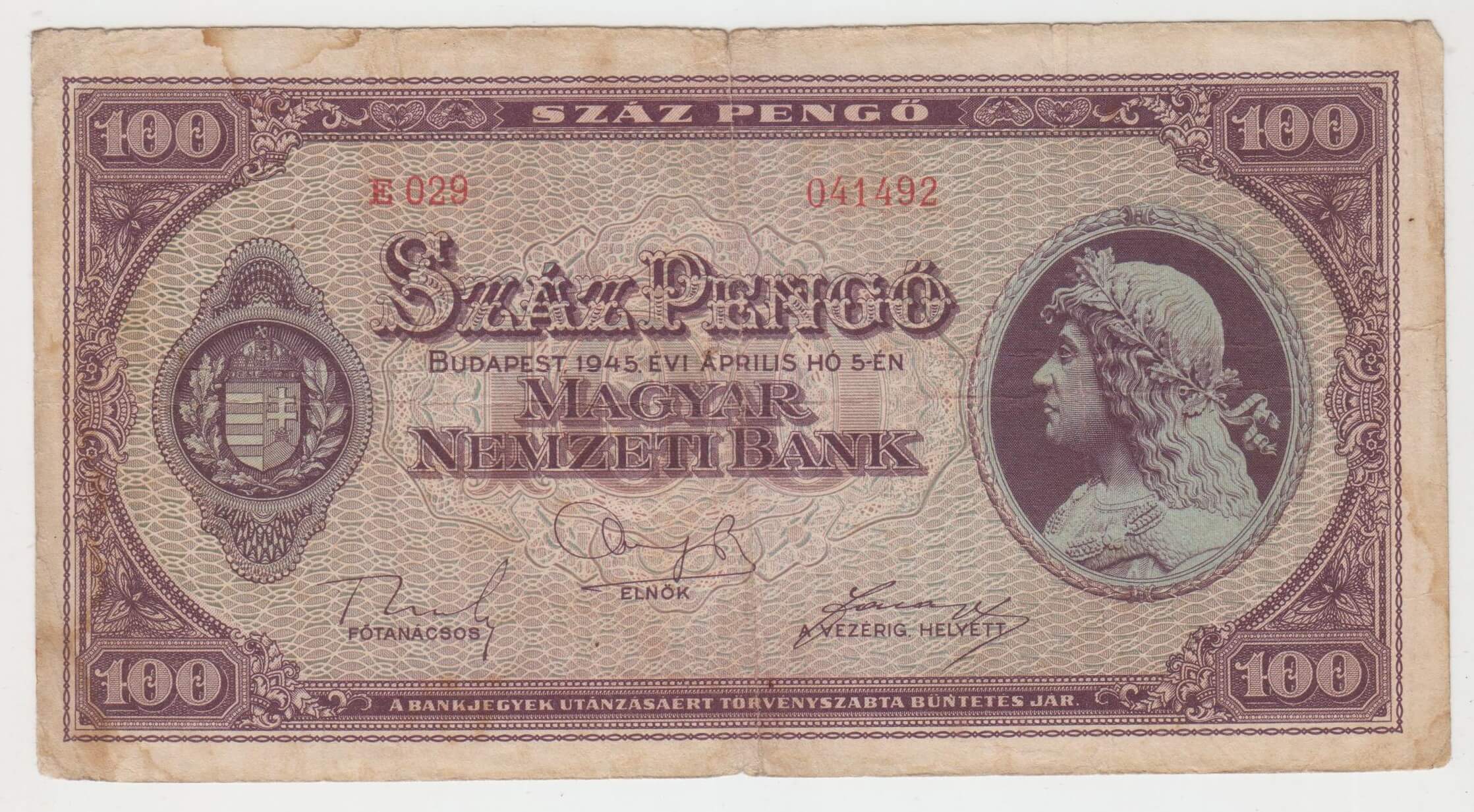 100 PENGO 1945 MADARSKO E029 041492 STAV VID FOTO MIERNE NATRHNUTA