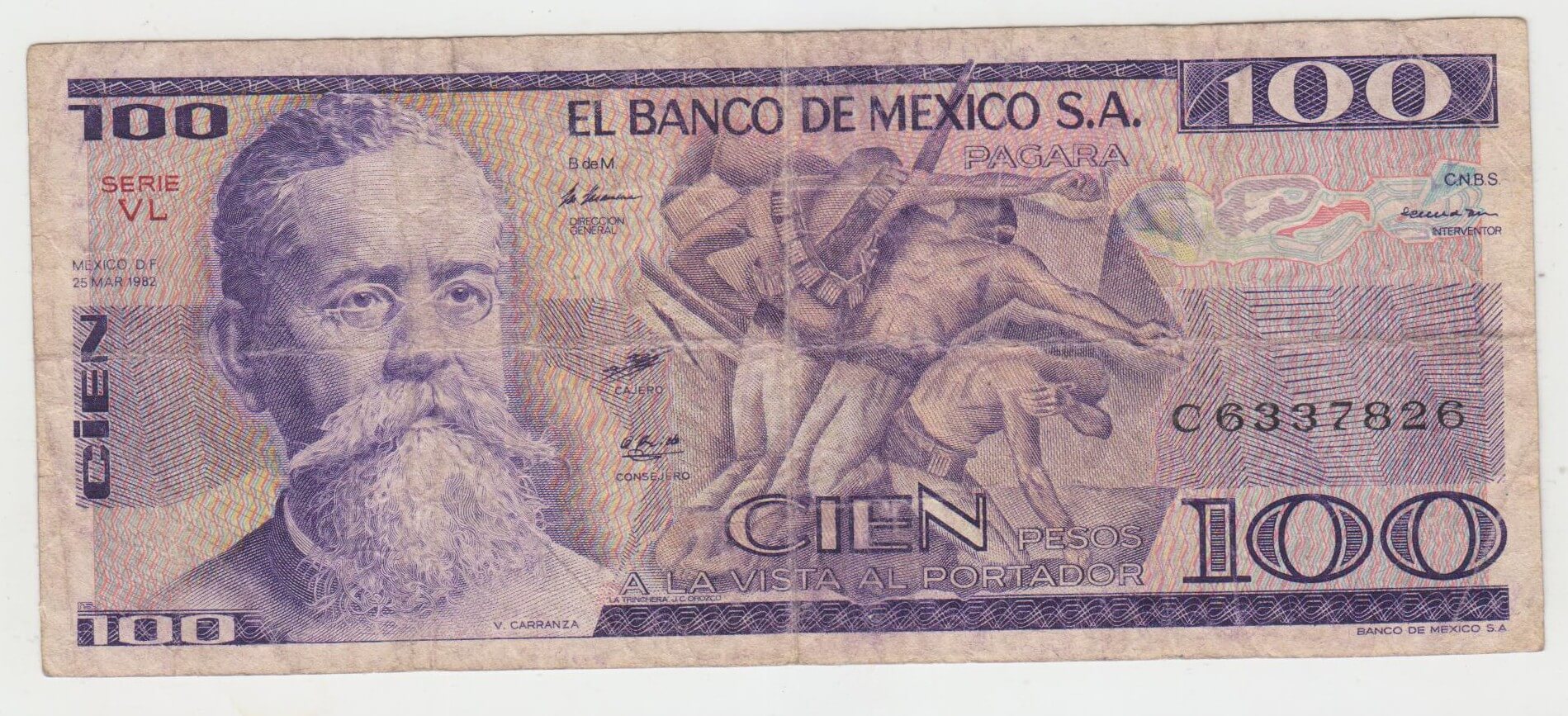 100 PESOS 1982 MEXIKO C6337826 STAV VID FOTO