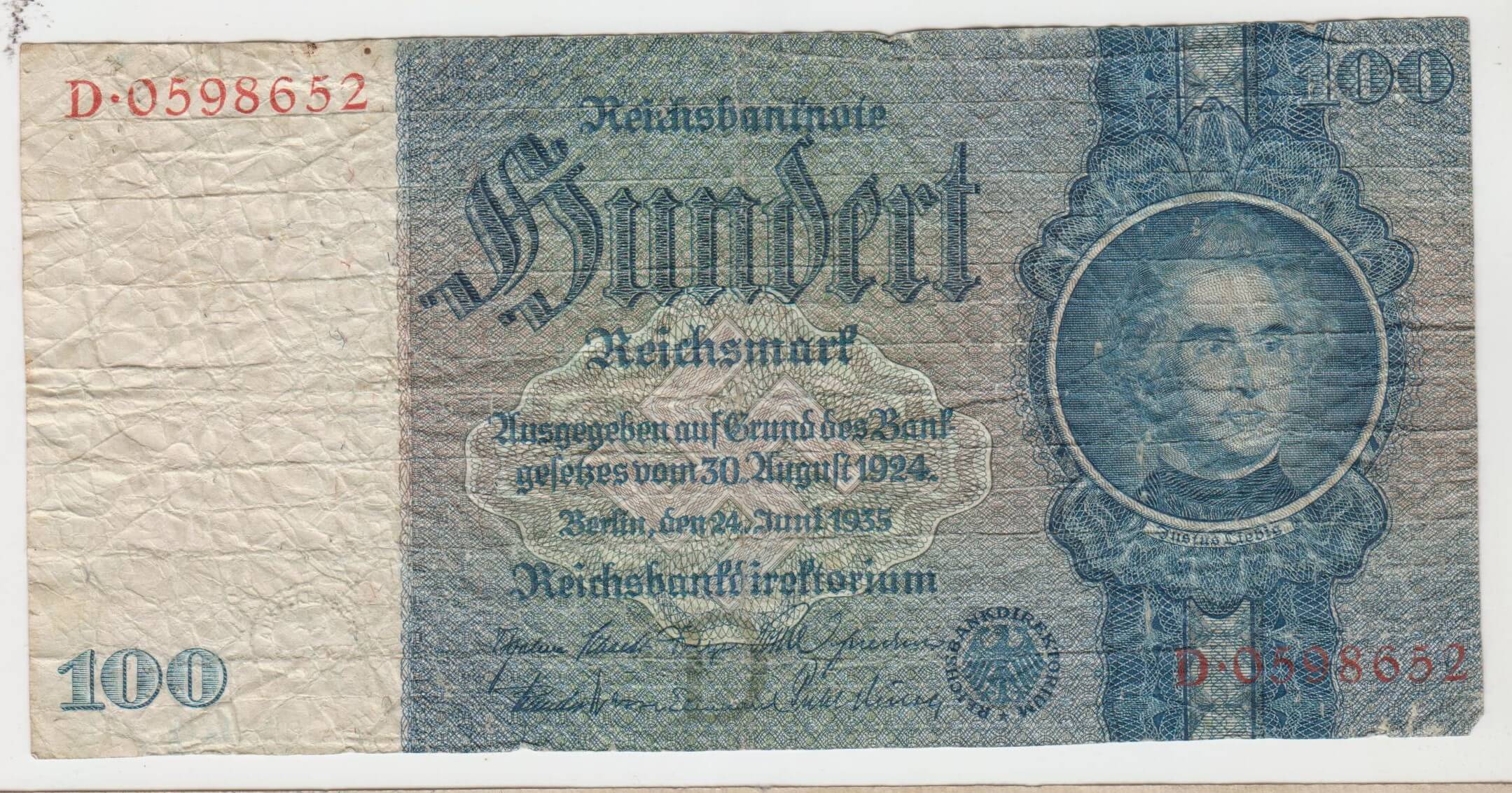 100 REICHSMARK 1935 NEMECKO D0598652 STAV VID FOTO POKRCENA