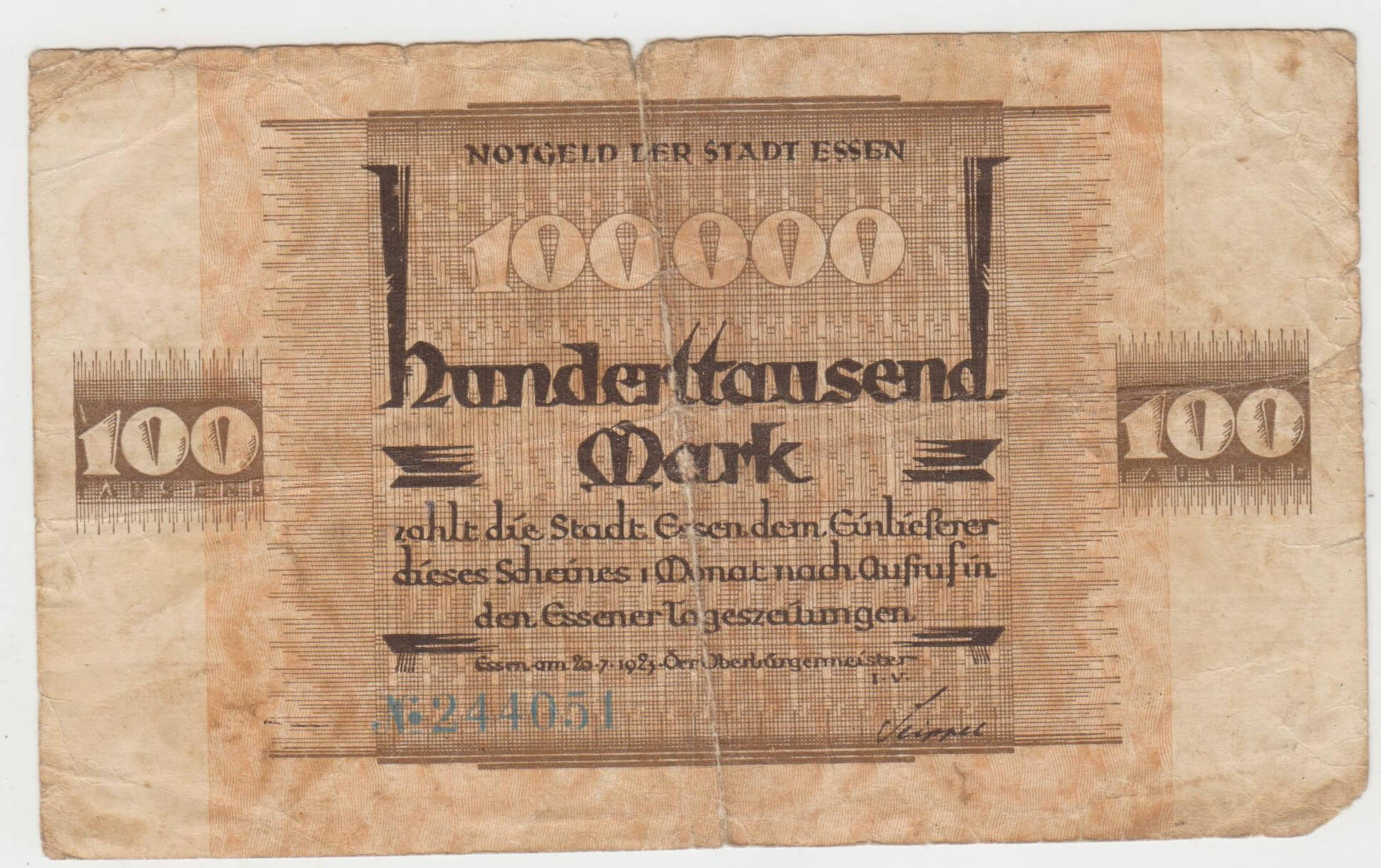 100000 MARK 1923 NEMECKO 244051 STAV VID FOTO NATRHNUTA