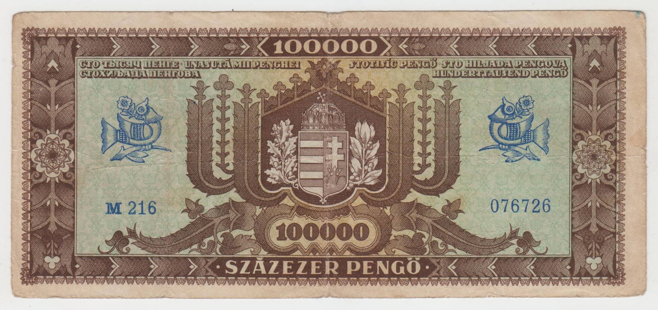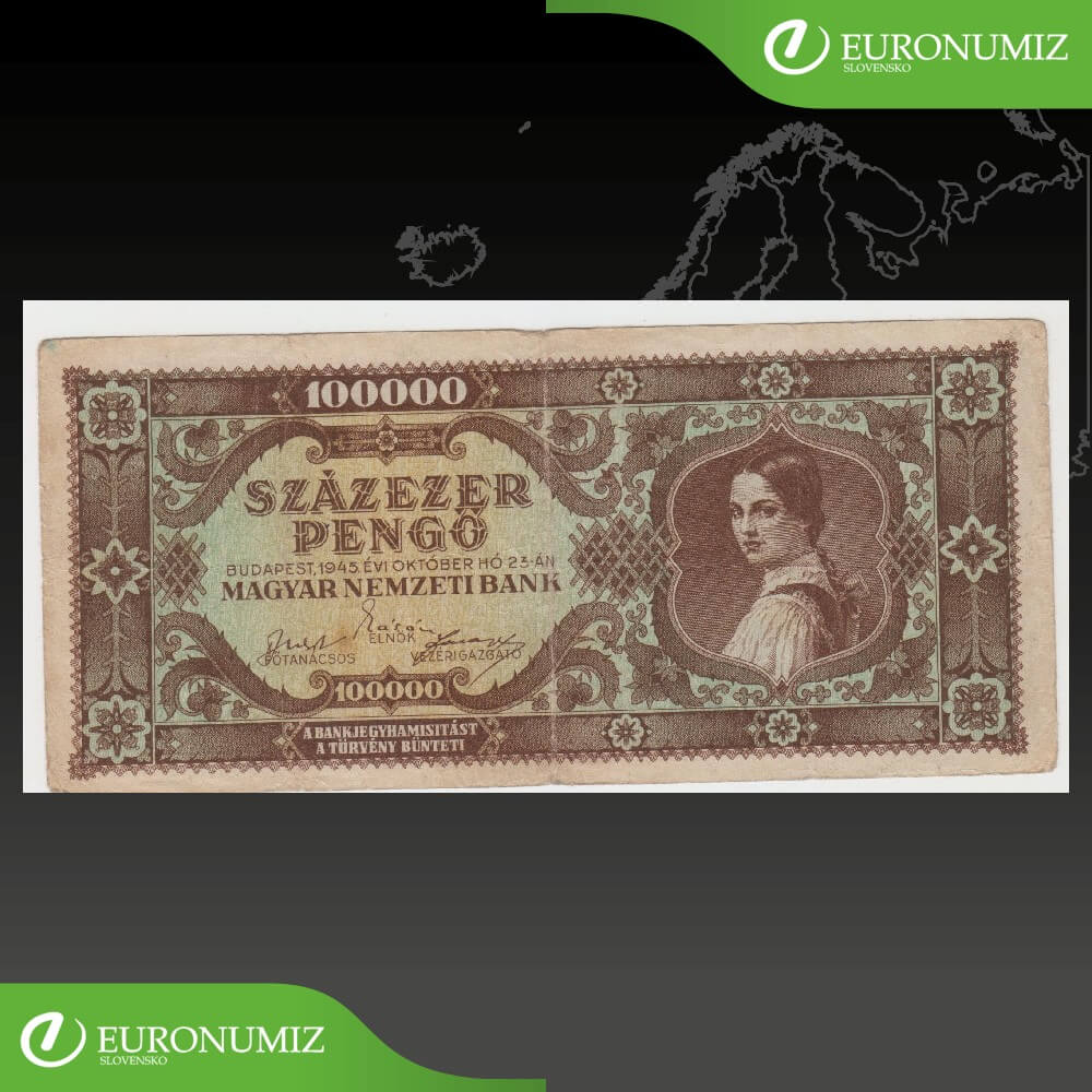 100000 PENGO 1945 MADARSKO M216 076726 STAV VID FOTO MIERNE NATRHNUTA