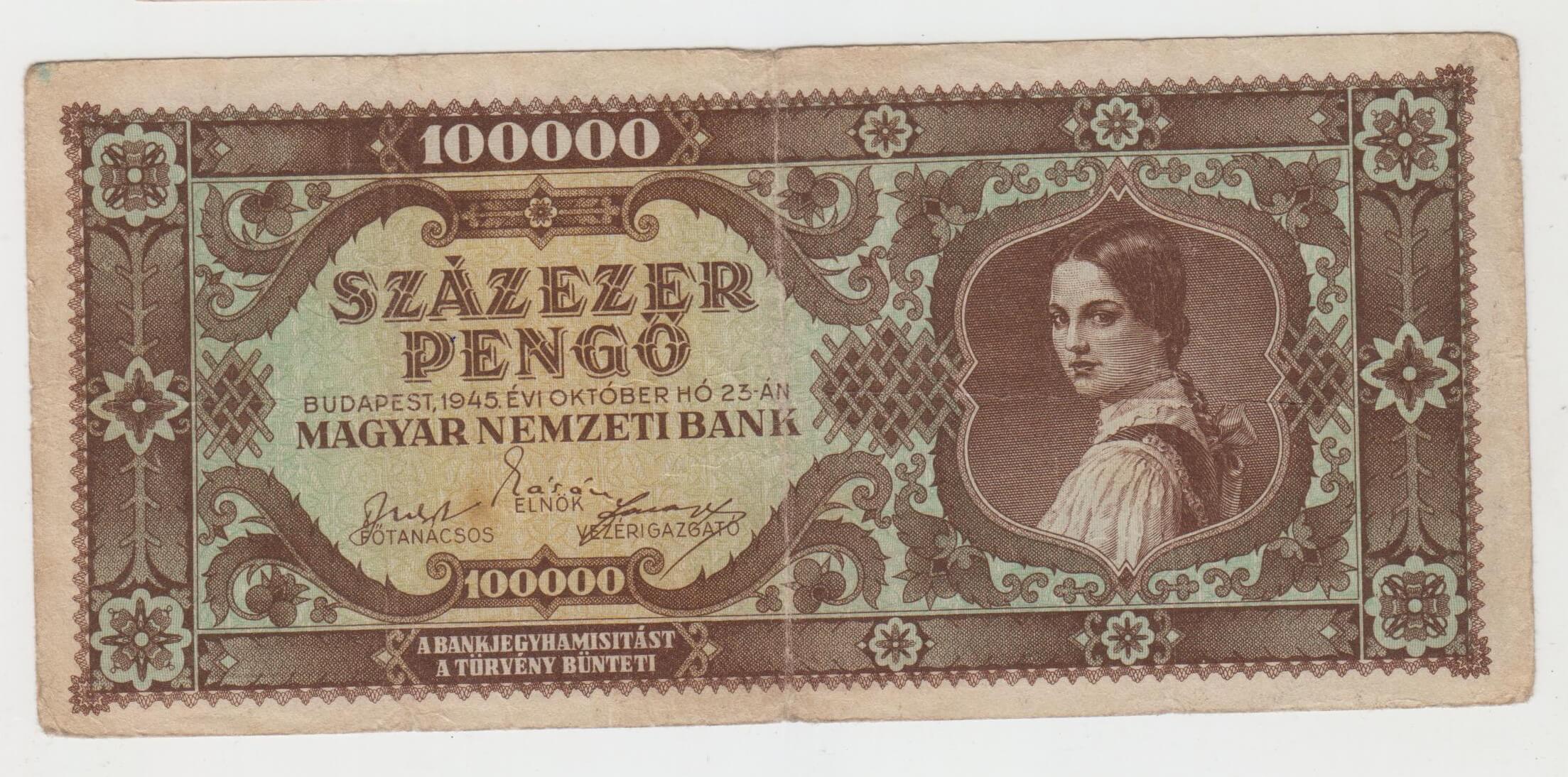 100000 PENGO 1945 MADARSKO