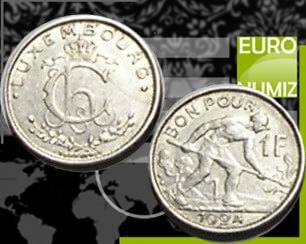 1 FRANK 1924 LUXEMBURSKO STAV VID FOTO