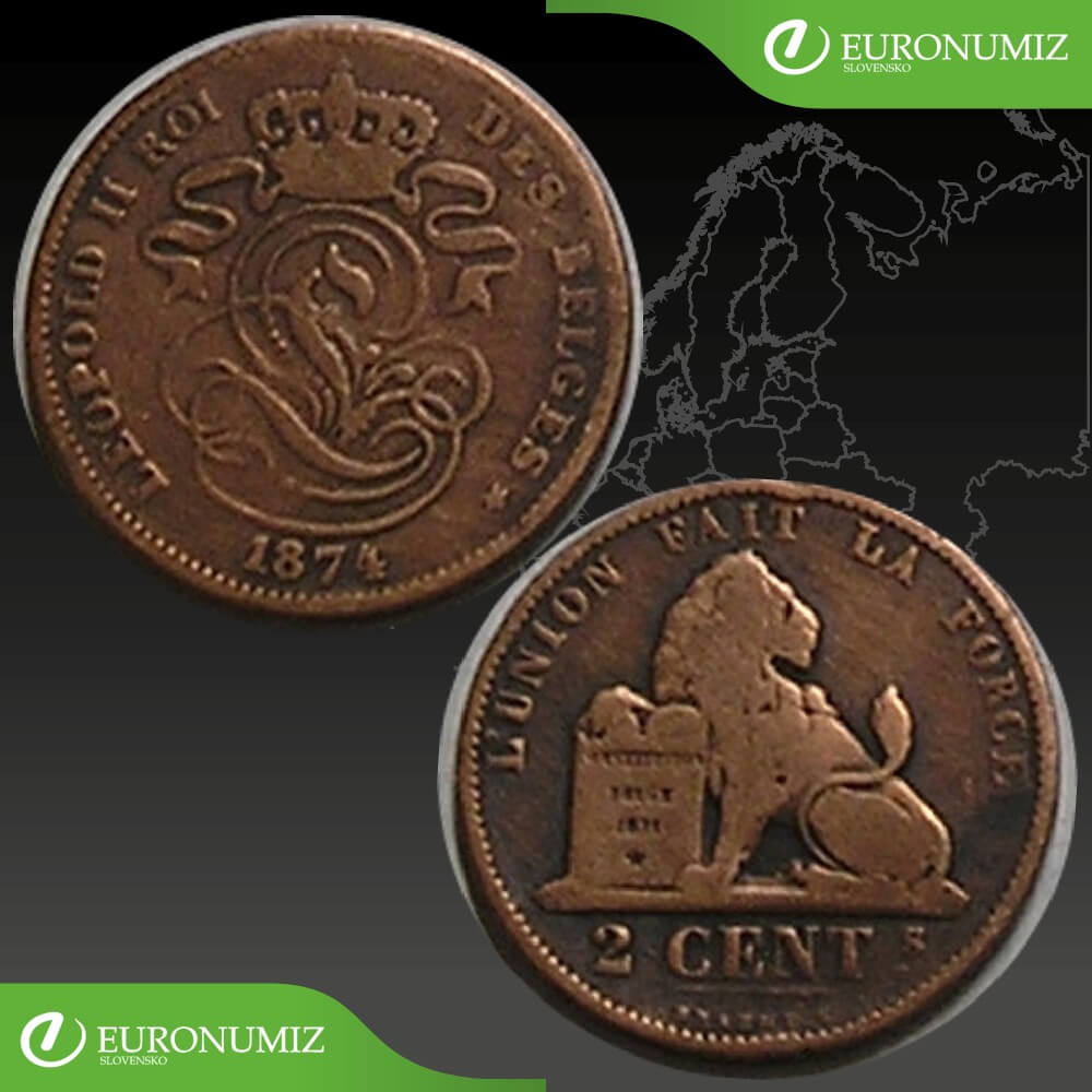 2 CENTS 1874 BELGICKO BELGES STAV VID FOTO