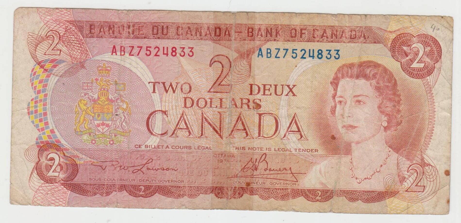 2 DOLLARS 1974 KANADA ABZ7524833 PRELEPENY STAV VID FOTO NATRHNUTY