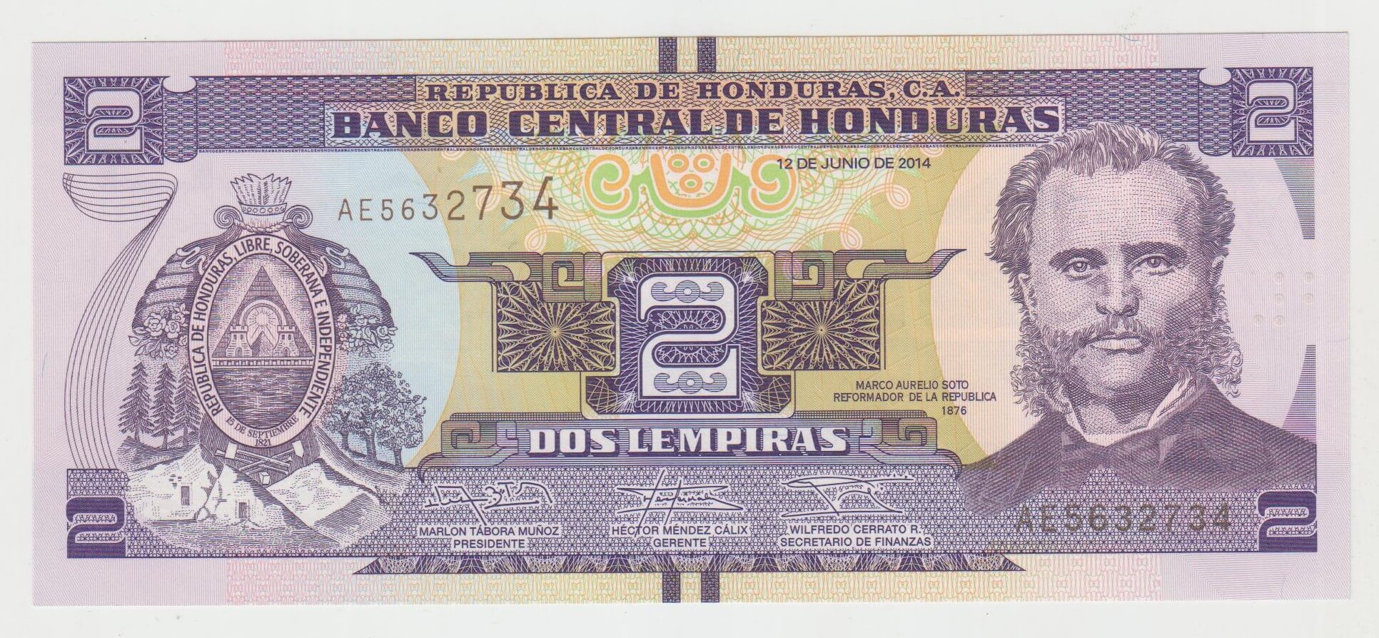 2 LEMPIRAS 2014 HONDURAS AE5632734 STAV VID FOTO