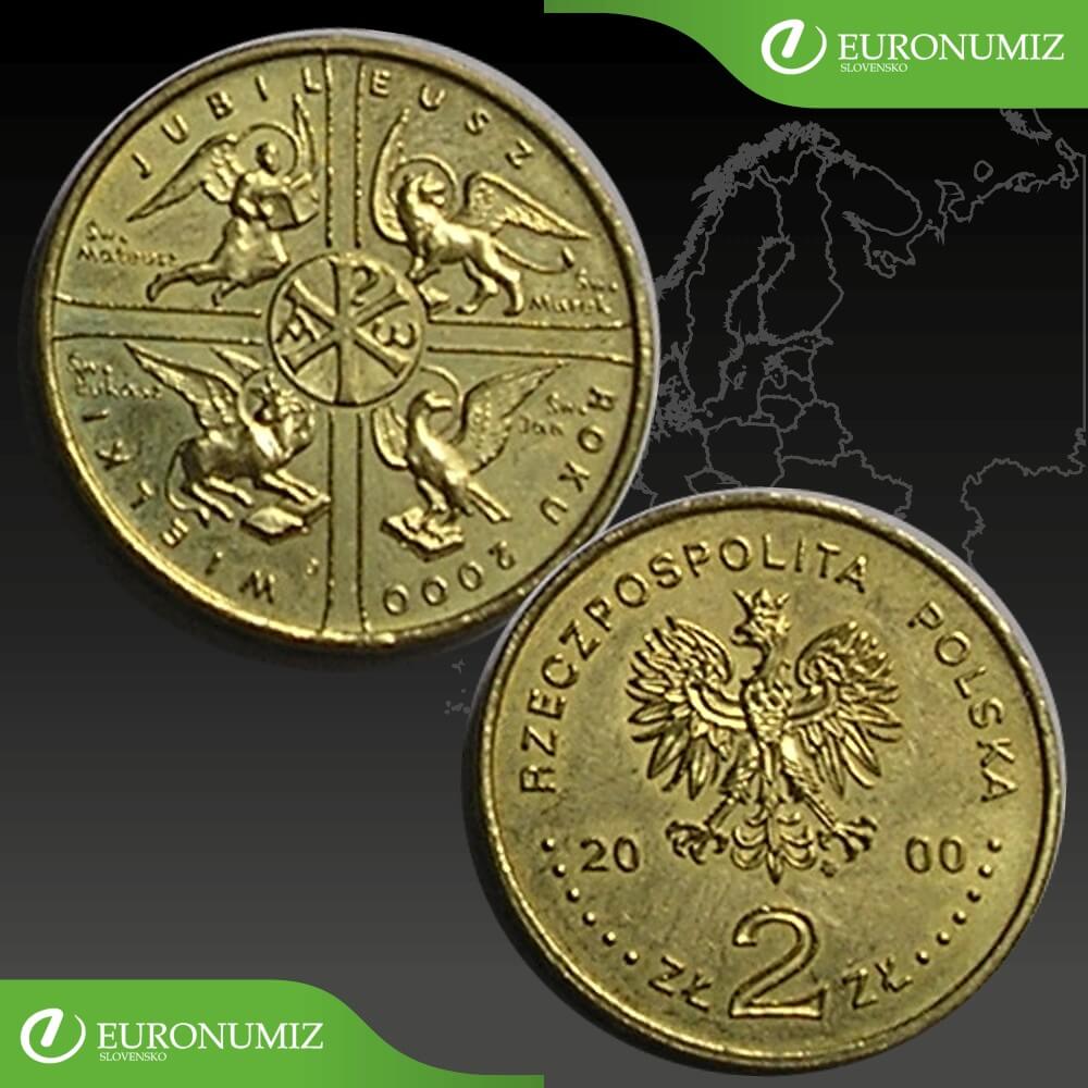 2 ZLOTE 2000 POLSKO STAV VID FOTO