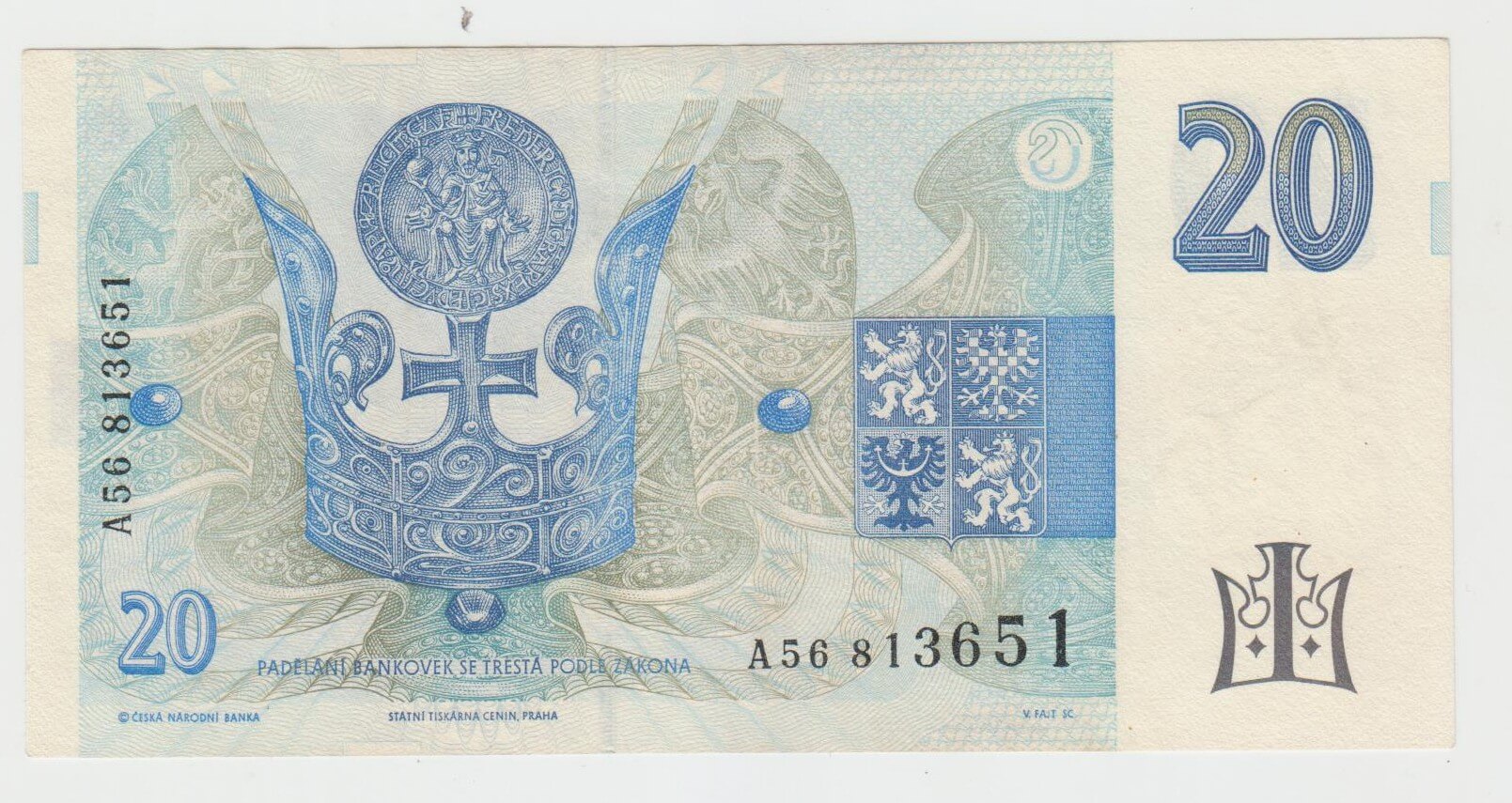 20 KORUN 1994 CESKA REPUBLIKA A56813651 STAV VID FOTO