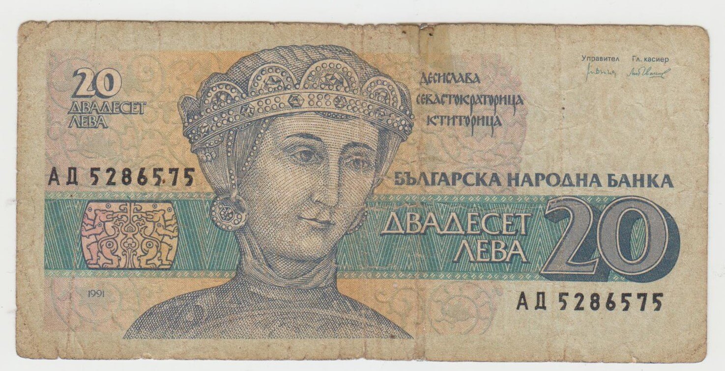 20 LEVA 1991 BULHARSKO A5286575 STAV VID FOTO MIERNE NATRHNUTA , PRELEPENA