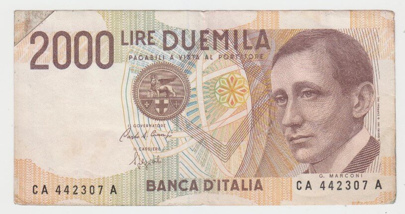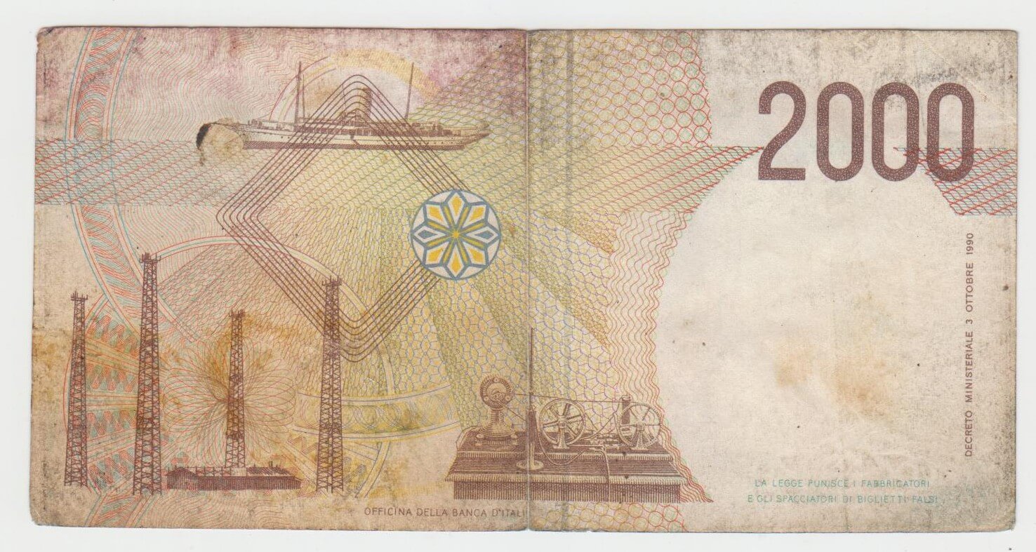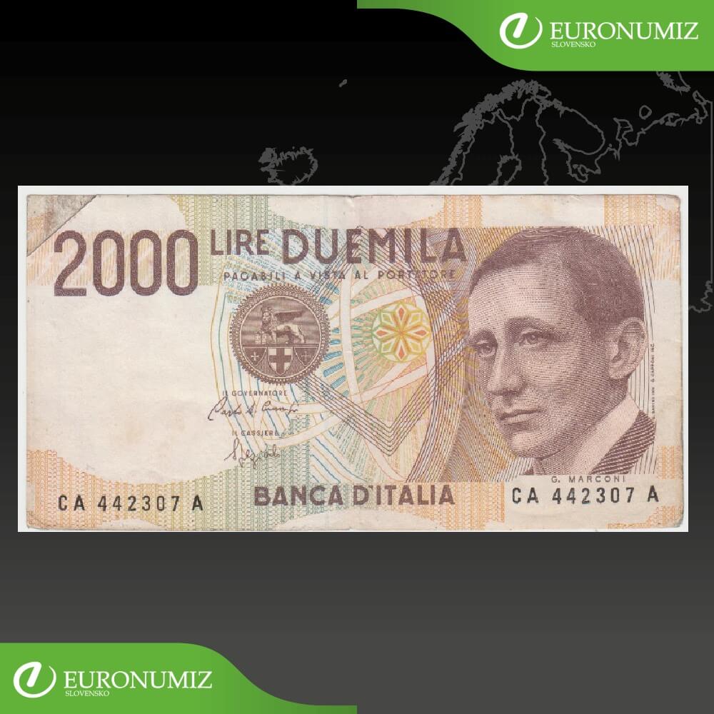 2000 LIRE 1990 TALIANSKO CA442307A STAV VID FOTO
