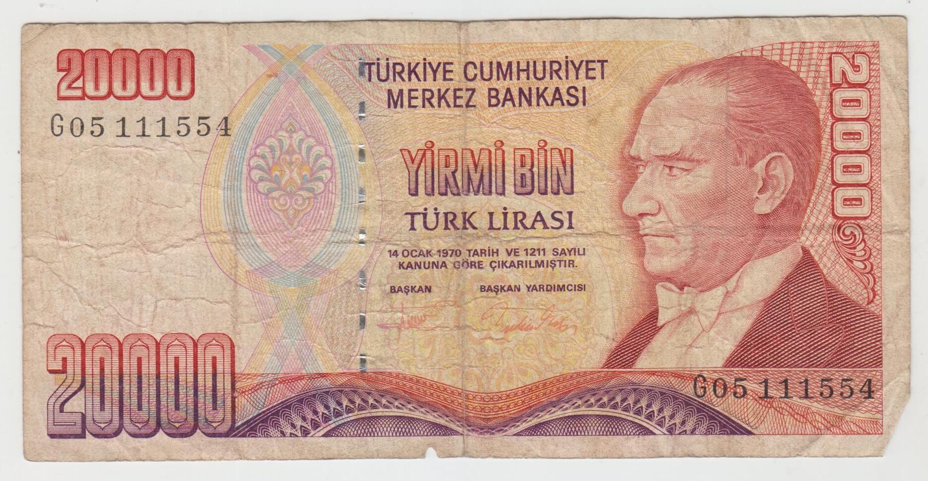 20000 LIRASI 1970 TURECKO G05111554 STAV VID FOTO MIERNE NATRHNUTA
