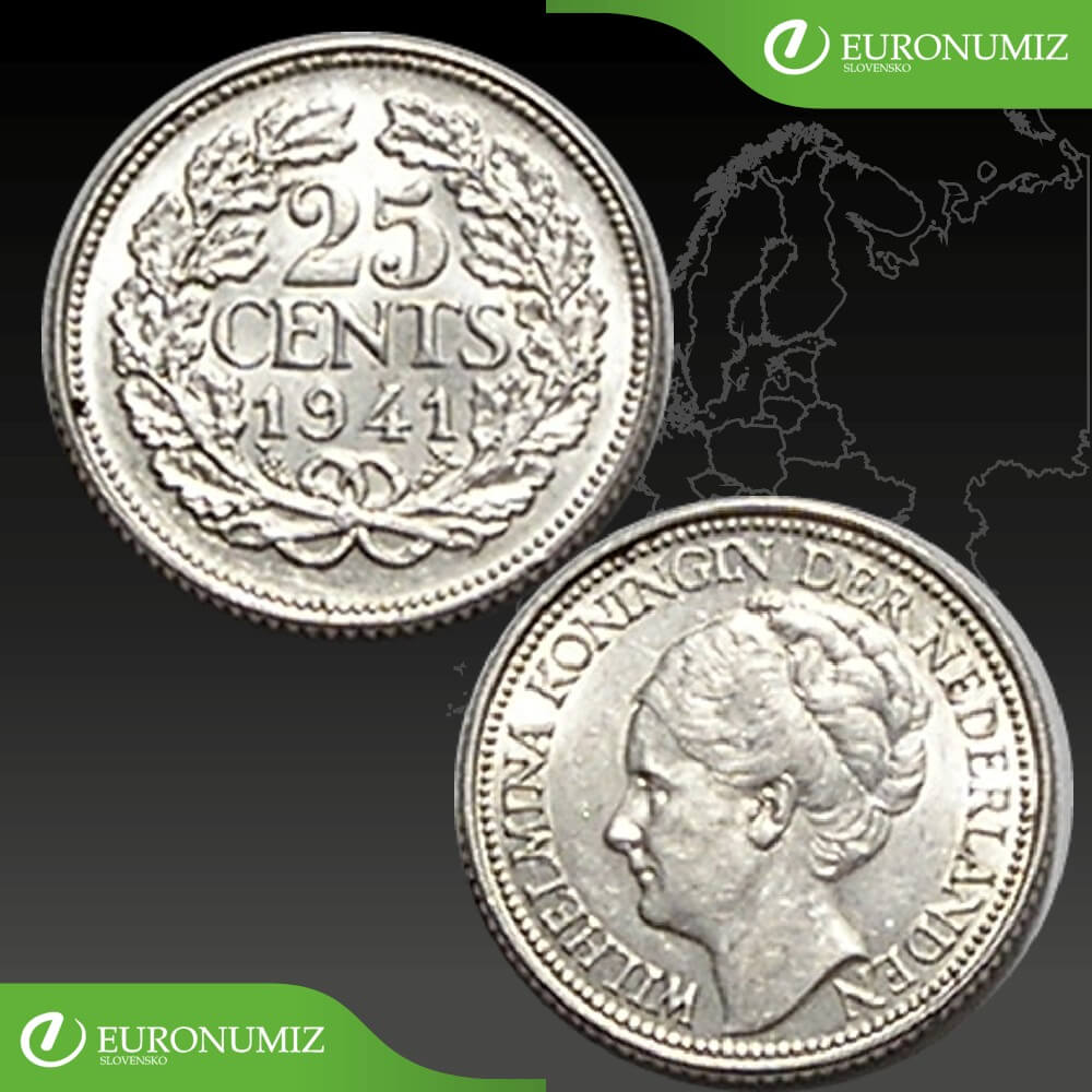 25 CENTS 1941 HOLANDSKO STRIEBRO