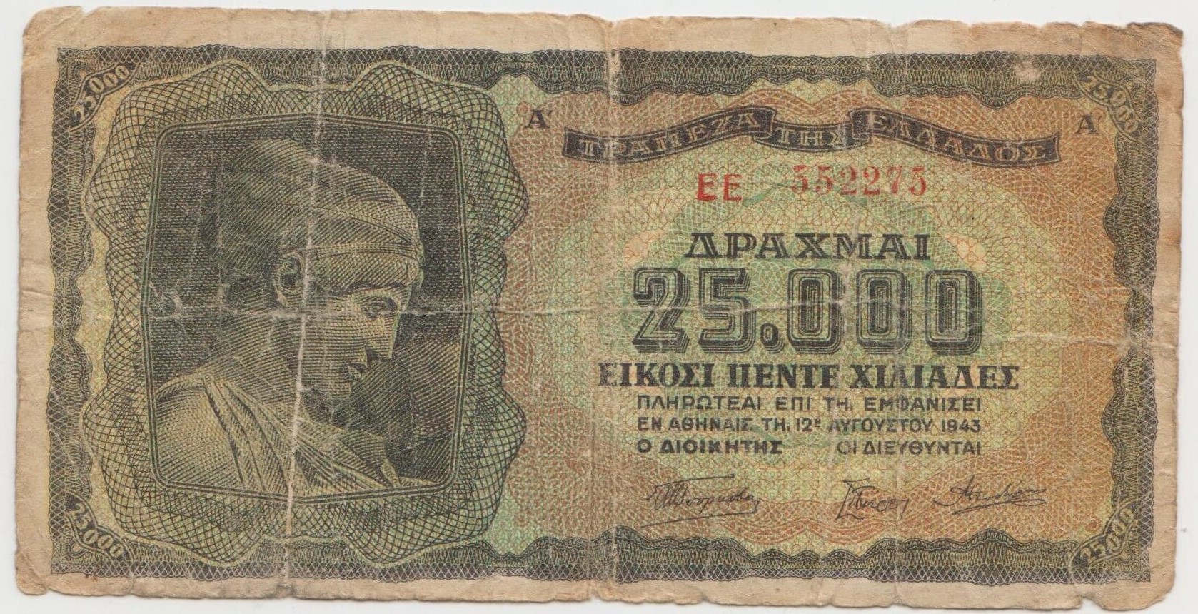 25000 DRACHMA 1943 GRECKO EE552275 STAV VID FOTO OPOTREBOVANA