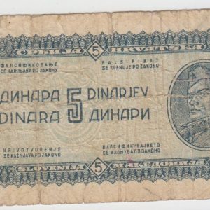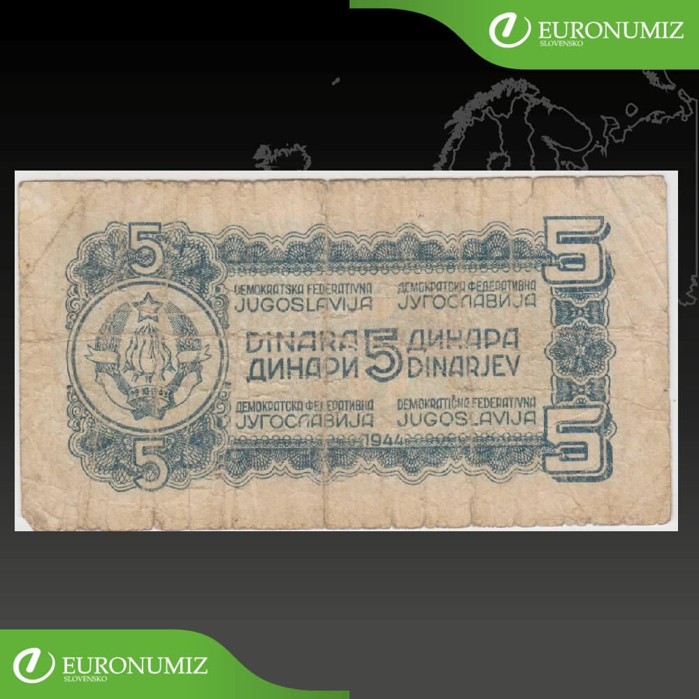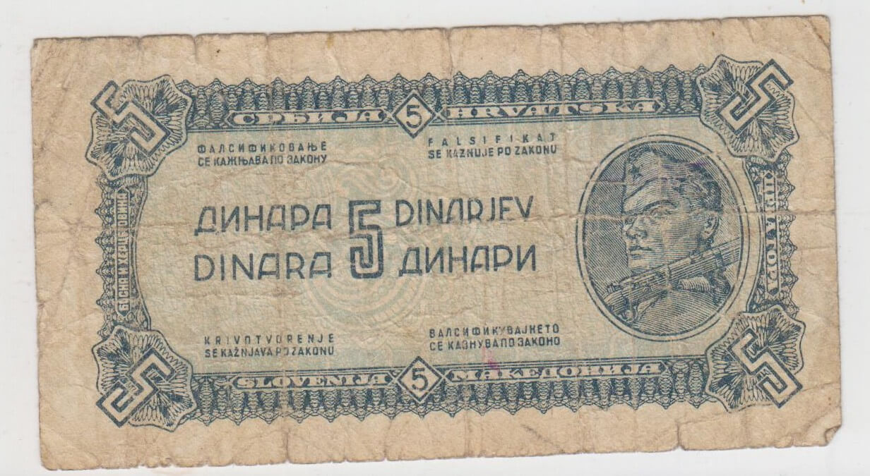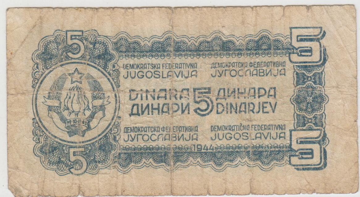 5 DINARA 1944 JUHOSLAVIA STAV VID FOTO NATRHNUTA