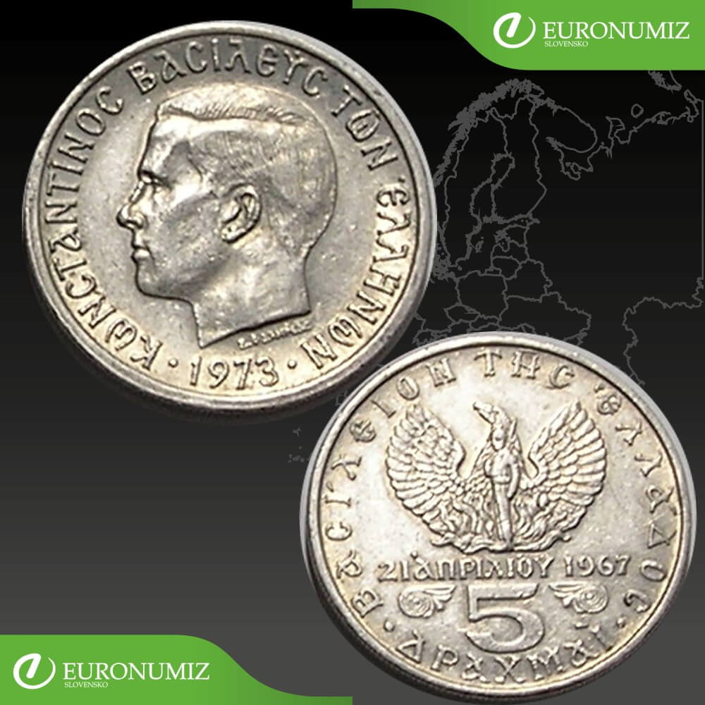 5 DRACHMA 1973 GRECKO STAV VID FOTO