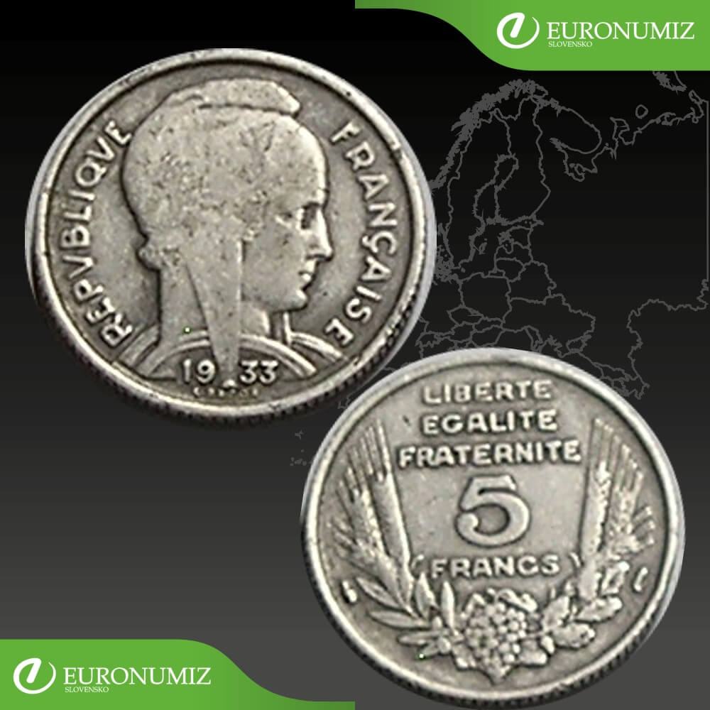 5 FRANCS 1933 FRANCUZSKO STAV VID FOTO