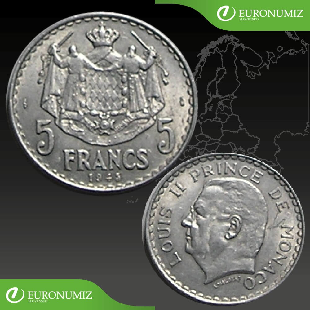 5 FRANCS 1945 MONAKO STAV VID FOTO