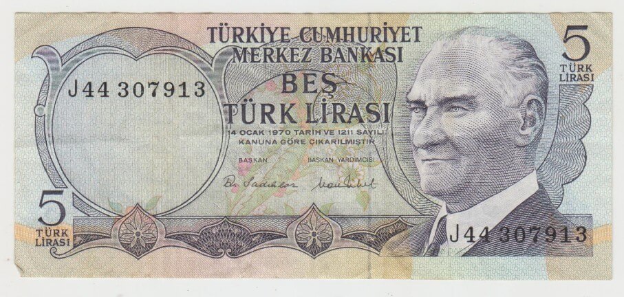 5 LIRASI 1970 TURECKO