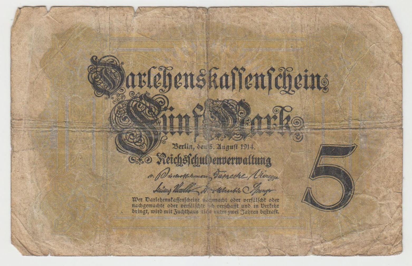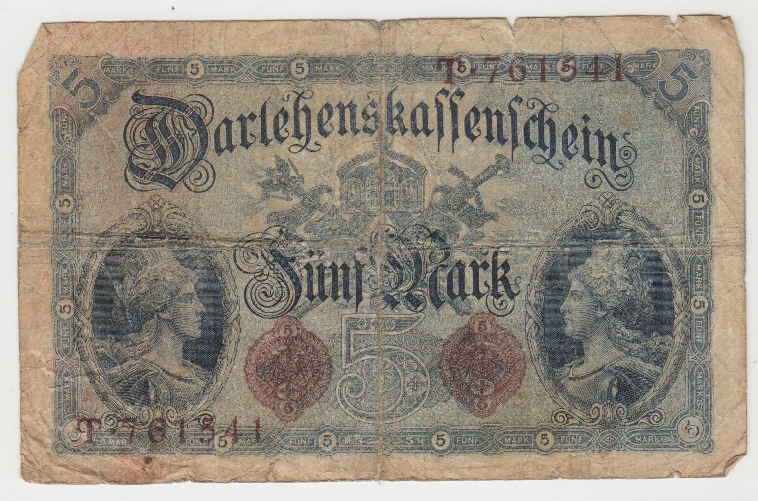 5 MARK 1914 NEMECKO T761541 STAV VID FOTO NATRHNUTA