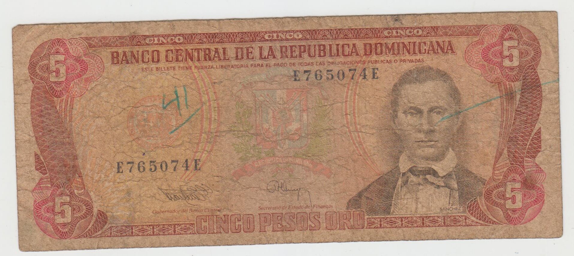 5 PESOS 1993 DOMINIKANSKA REPUBLIKA E765074E STAV VID FOTO