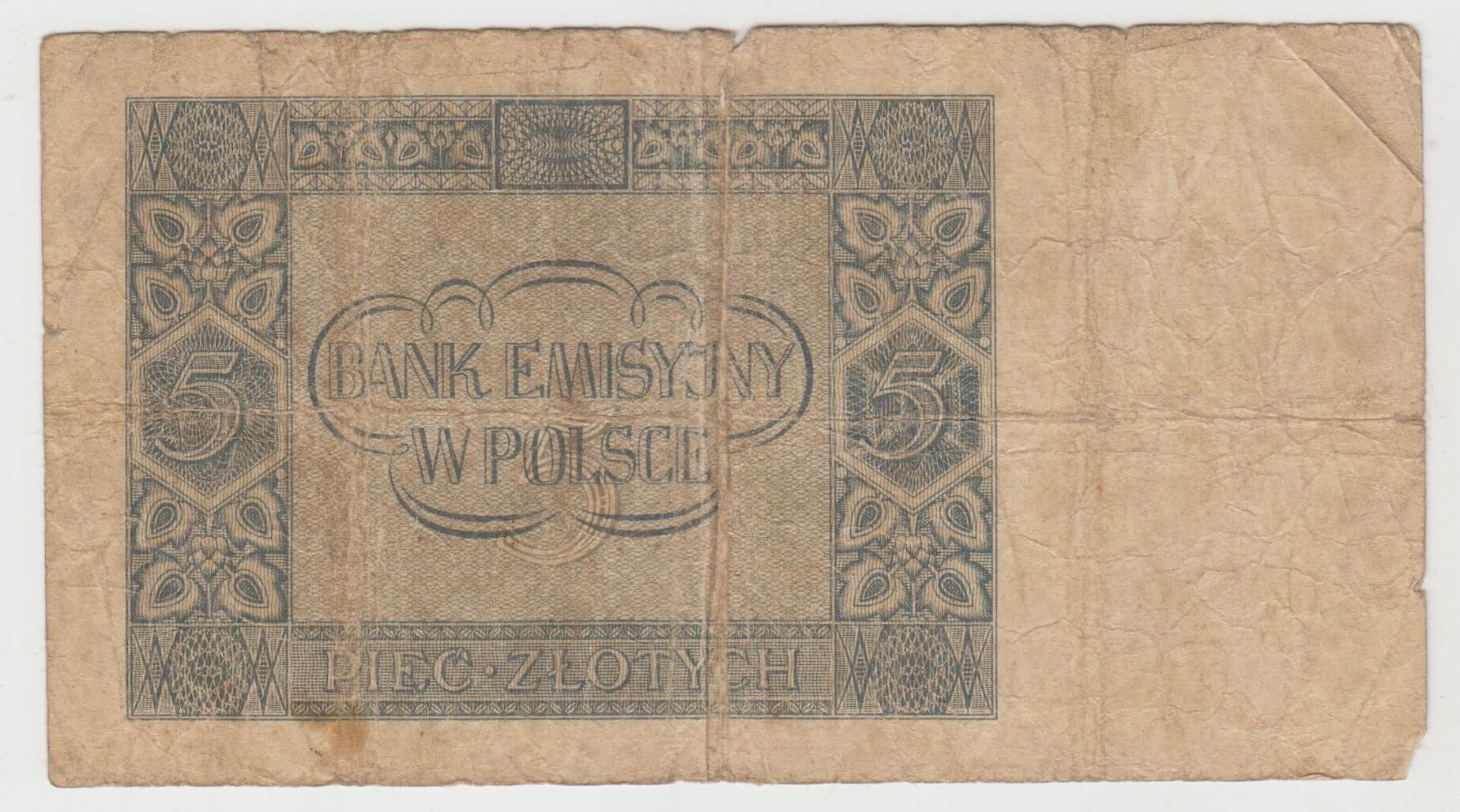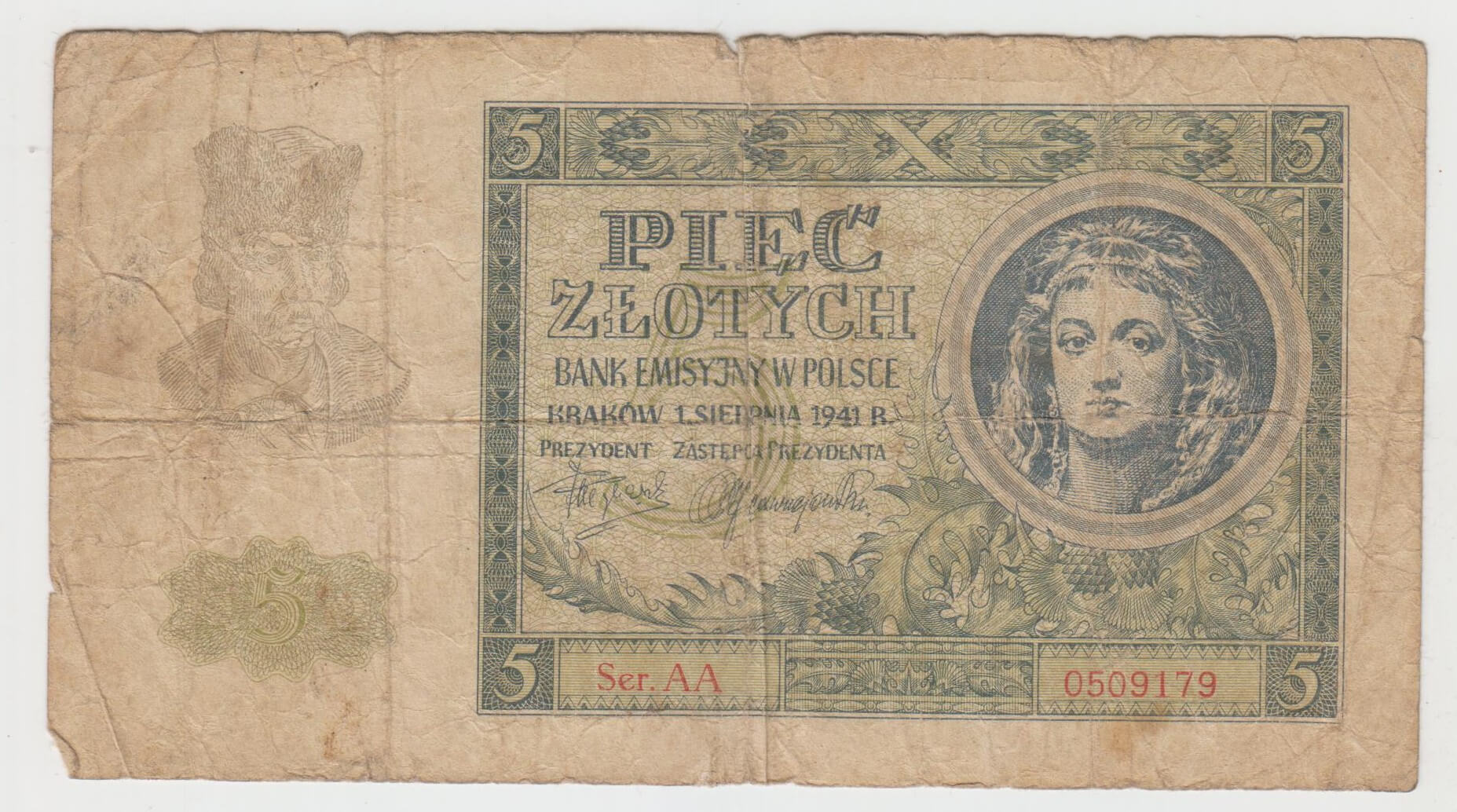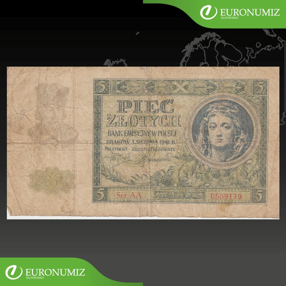 5 ZLOTYCH 1941 POLSKO AA 0509179 STAV VID FOTO NATRHNUTA