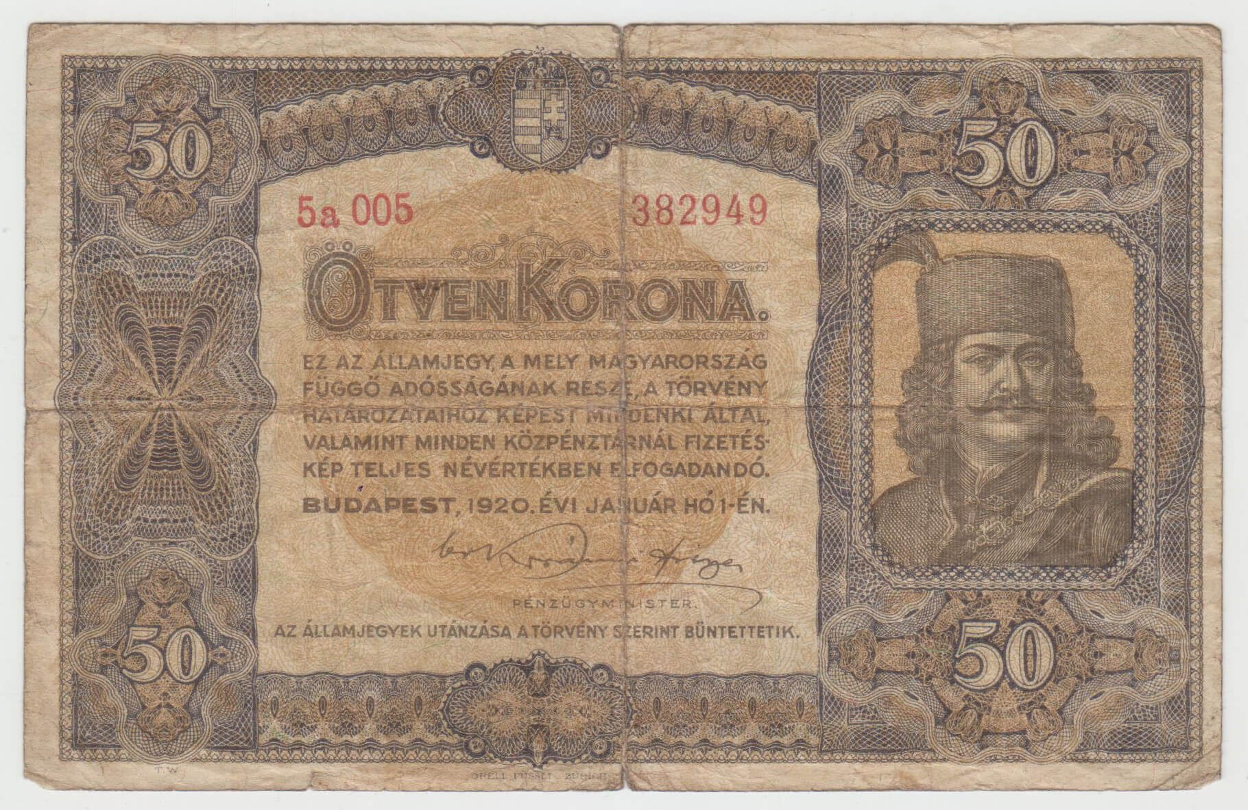 50 KORONA 1920 MADARSKO 5A005 382949 STAV VID FOTO NATRHNUTA